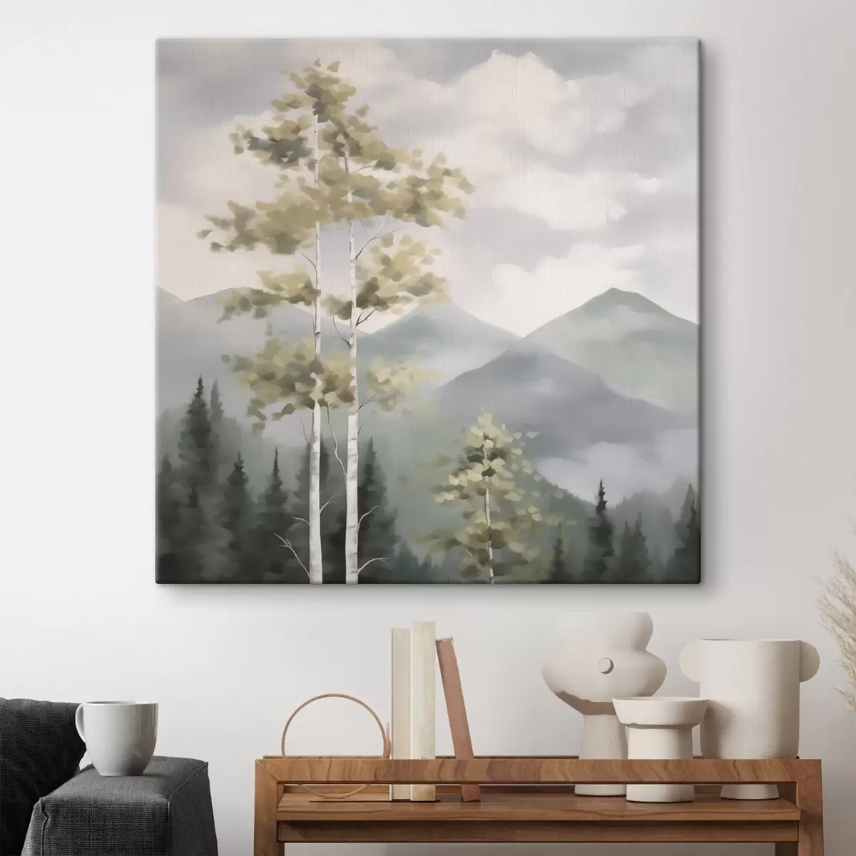 Cuadros Árboles con las montañas de fondo, imitación de un cuadro Nr s48421