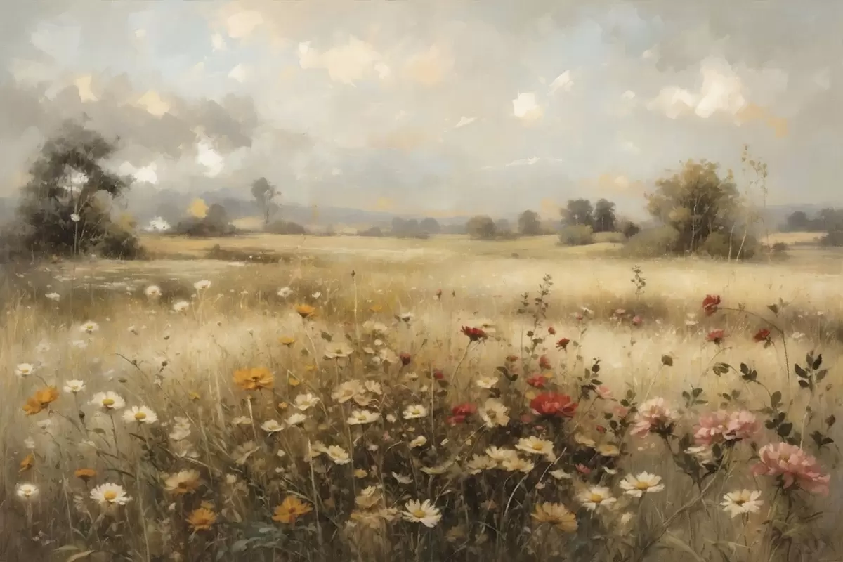 Cuadros Campo de flores silvestres bañado por una luz suave Nr s48491
