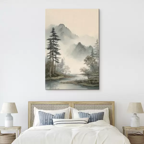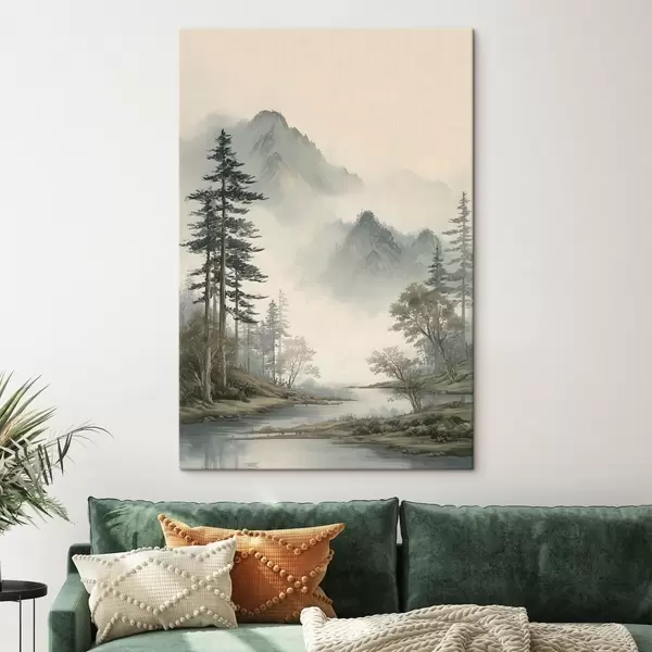 Cuadros un paisaje montañoso con pinos y un río Nr s48531