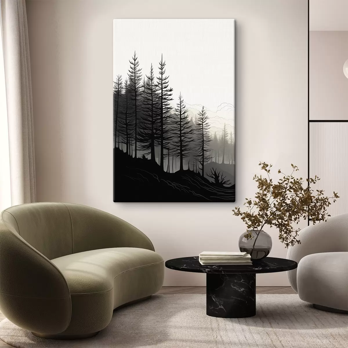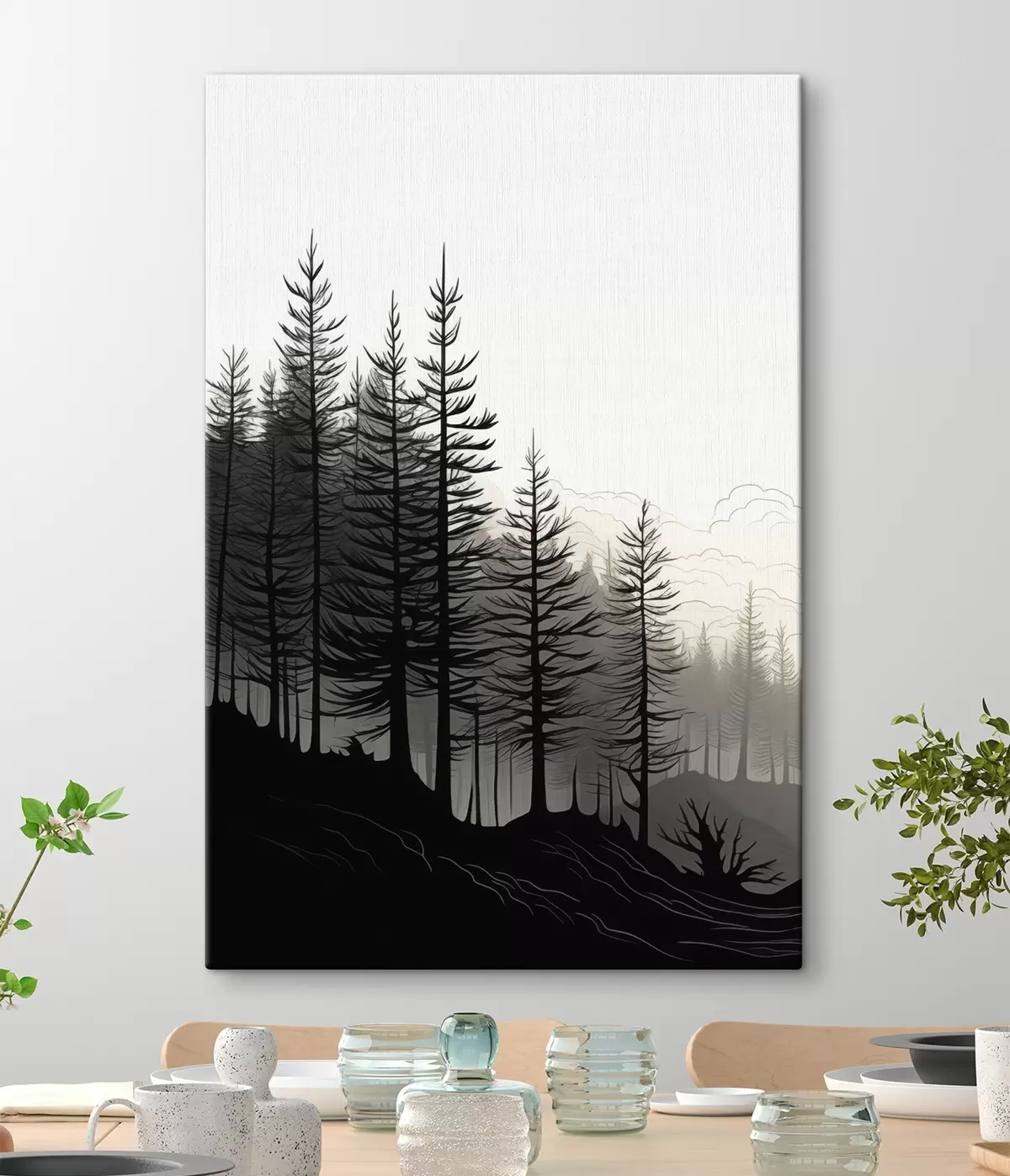 Cuadros Bosque brumoso, paisaje en blanco y negro Nr s48573