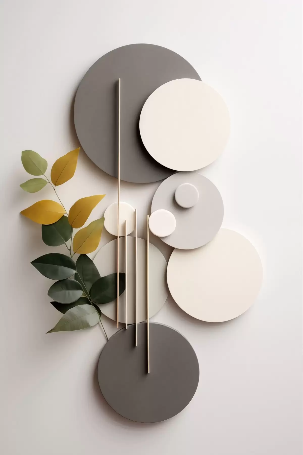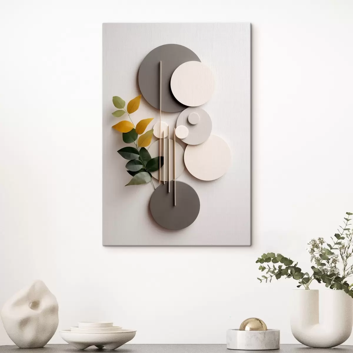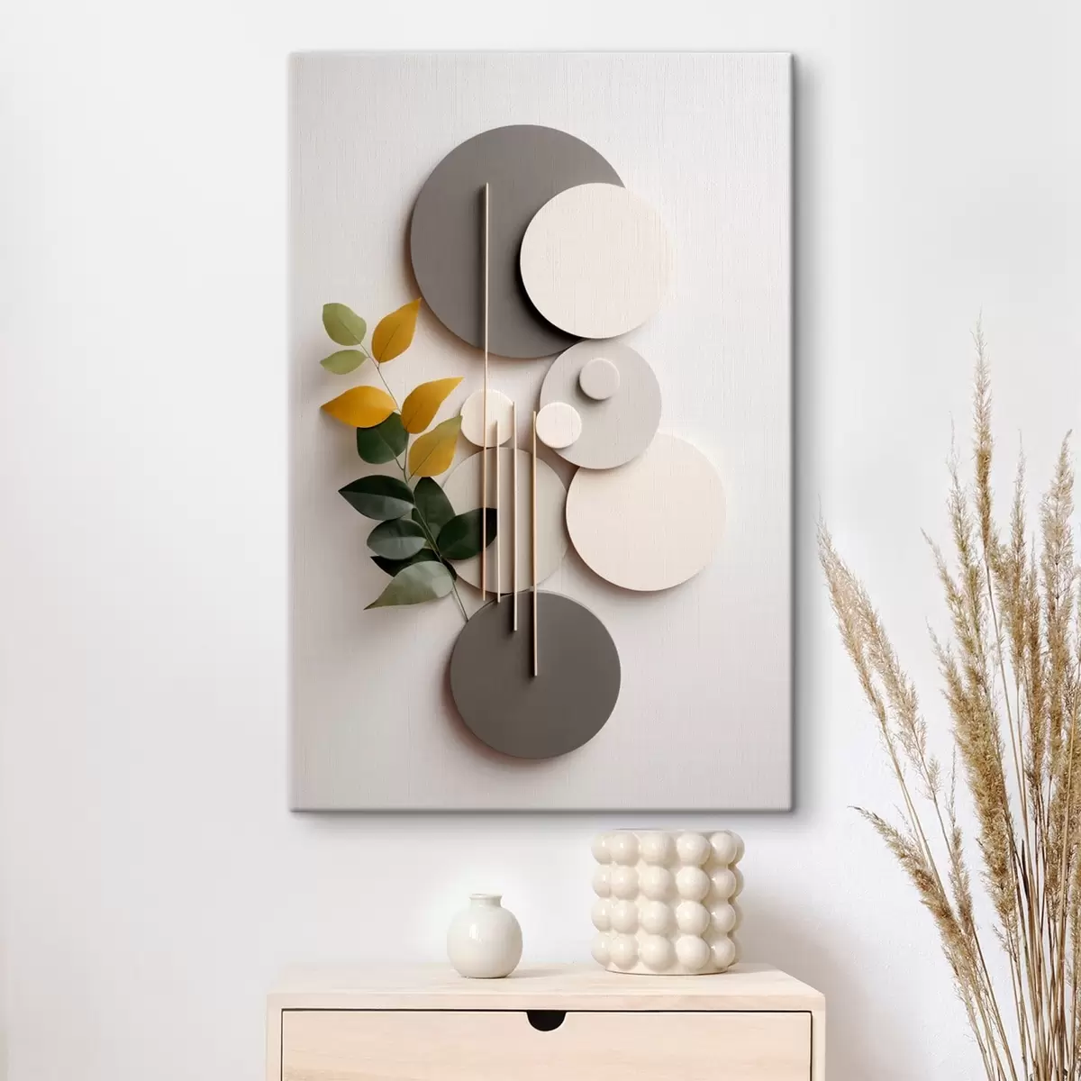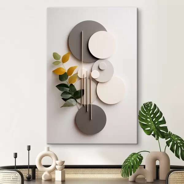Cuadros Círculos geométricos con una rama de hojas verdes Nr s48598