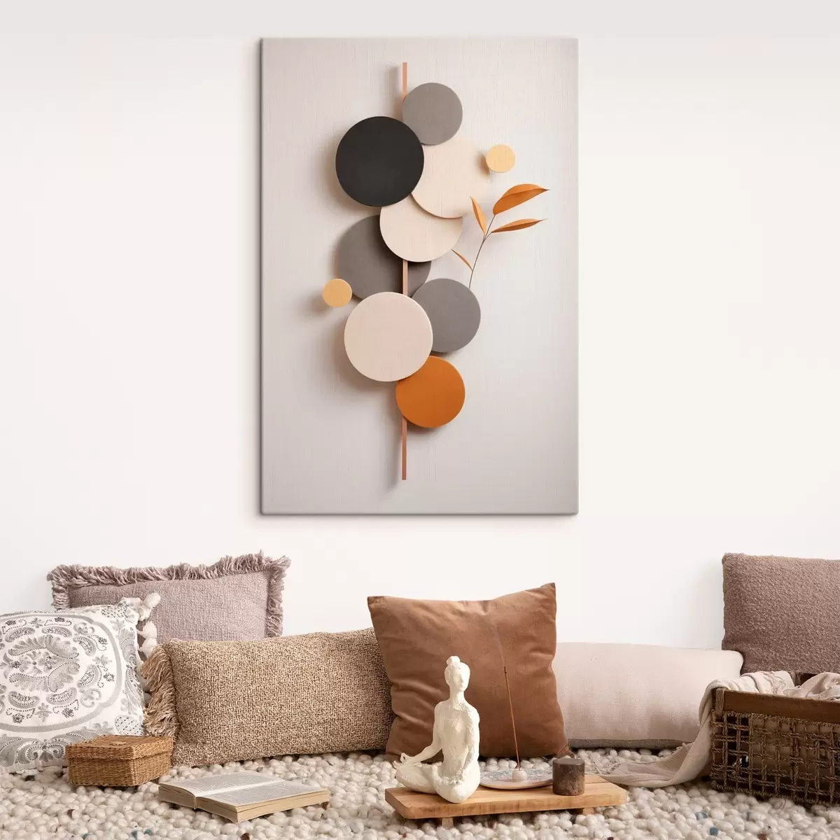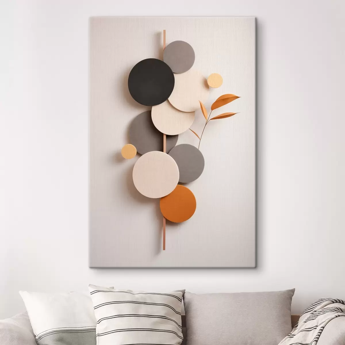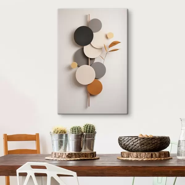 Cuadros Círculos abstractos con hojas en tonos neutros Nr s48602