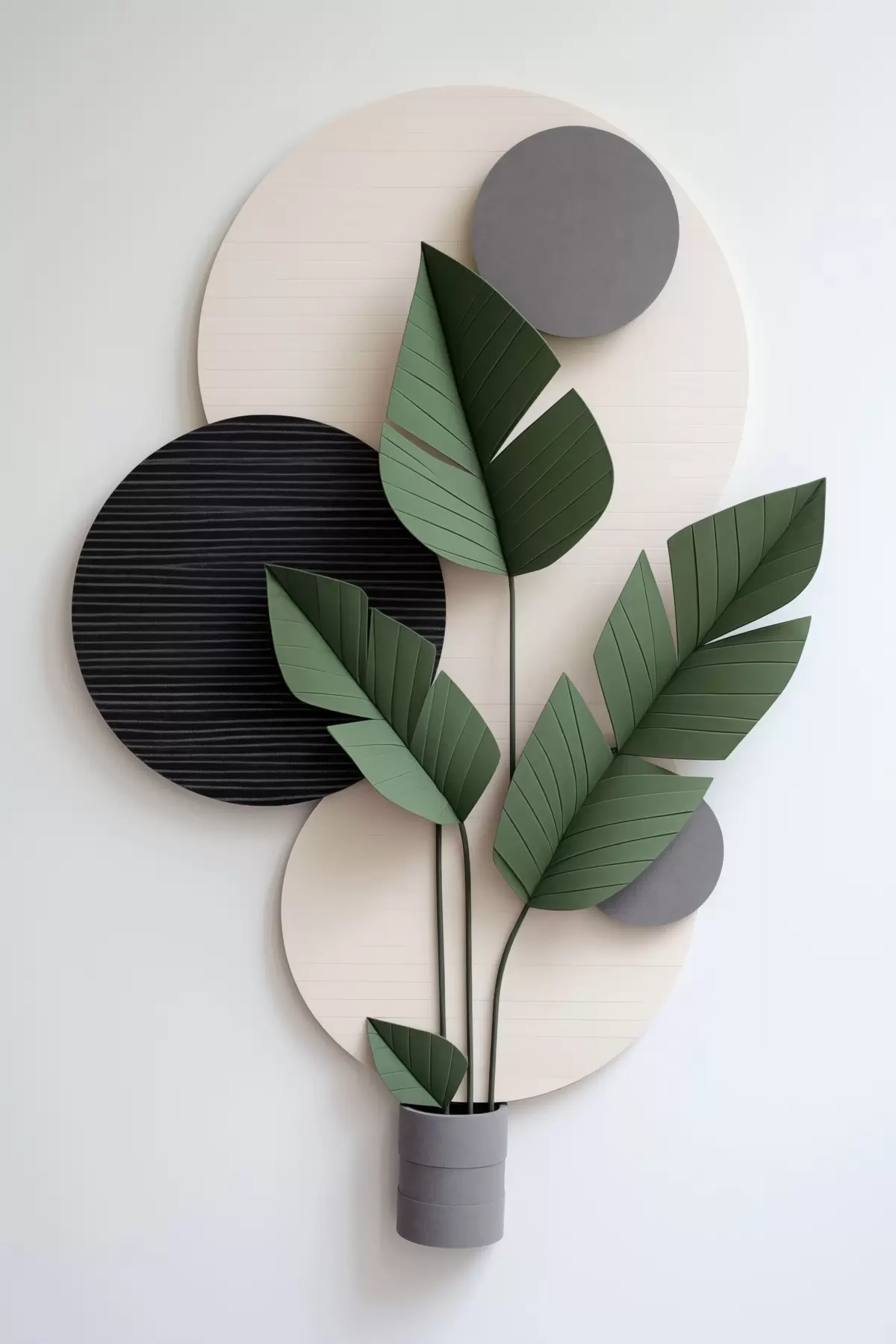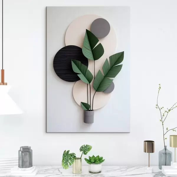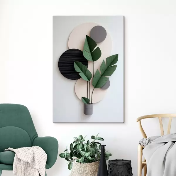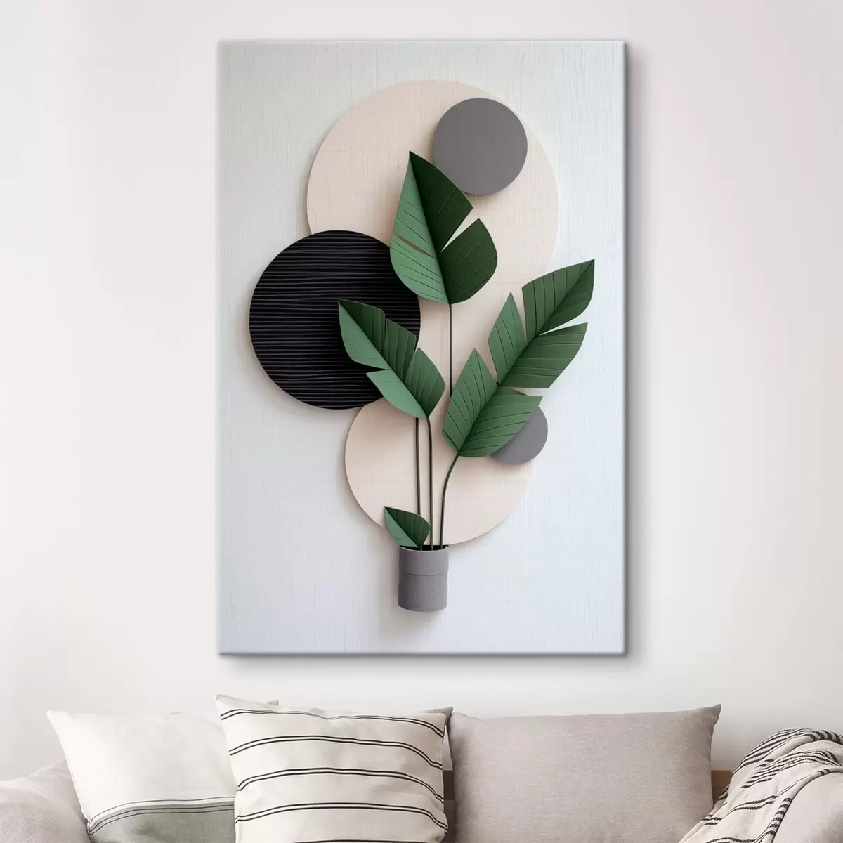 Cuadros Diseño minimalista con círculos geométricos y hojas verdes Nr s48607
