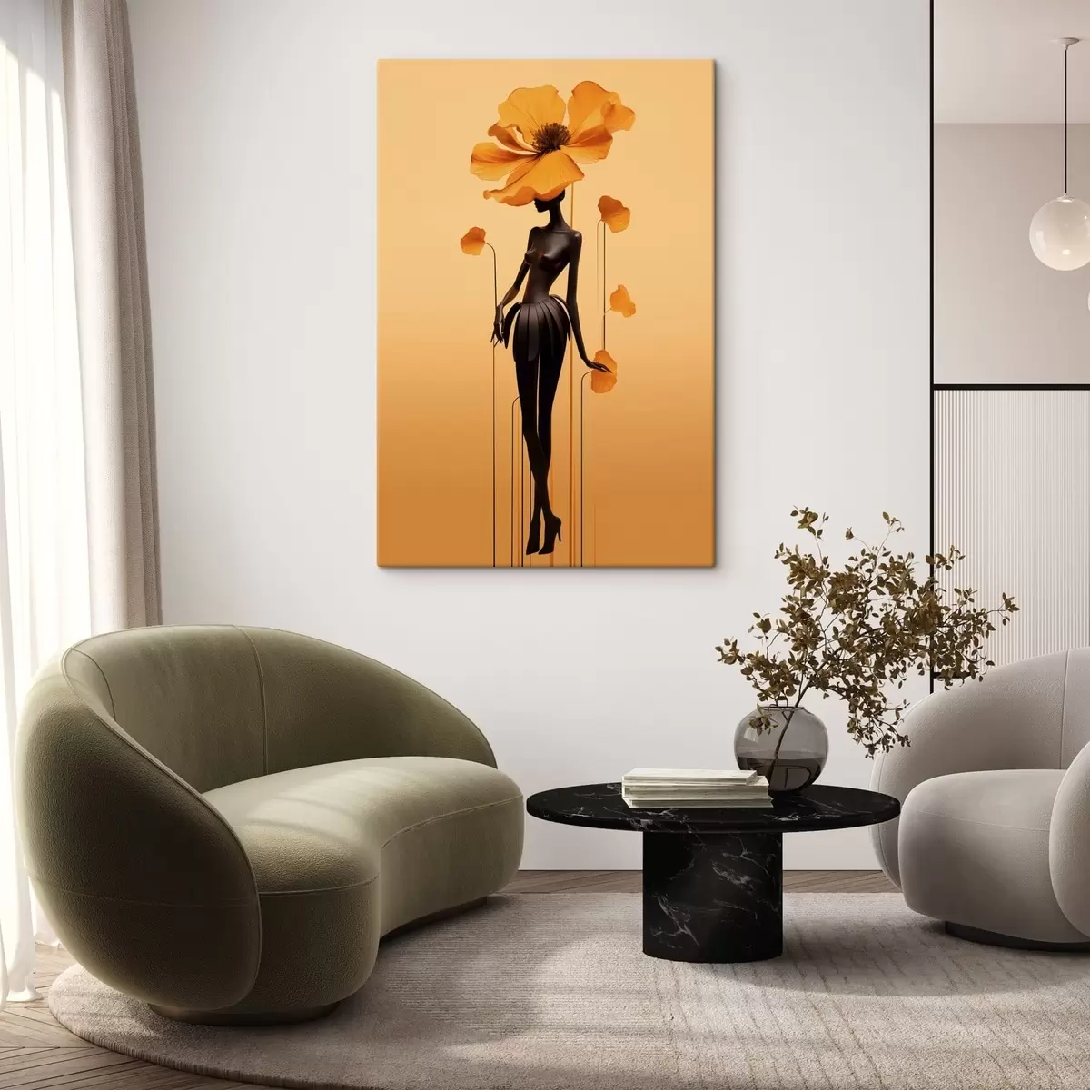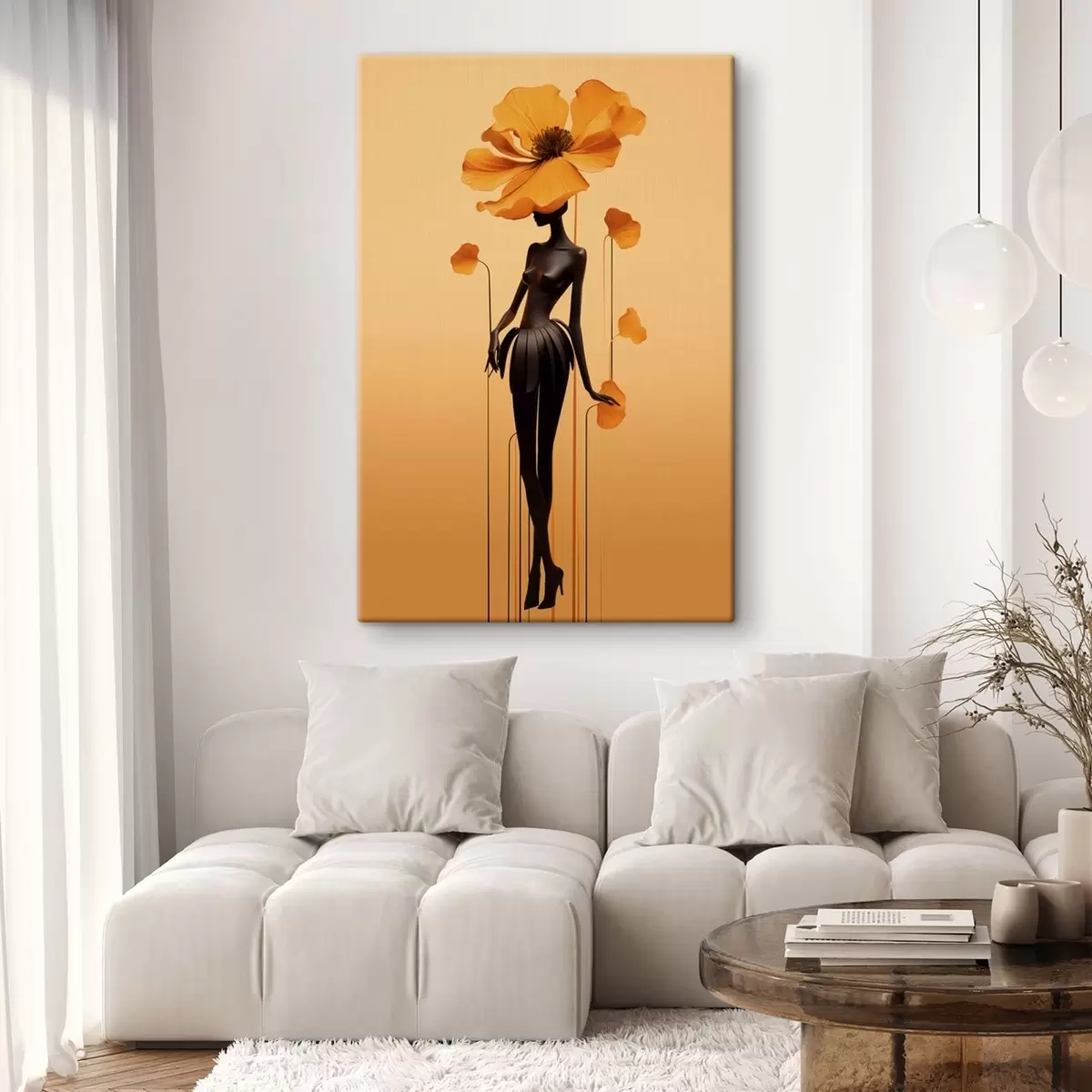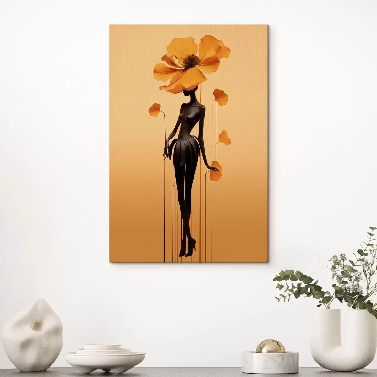 Cuadros Una elegante figura con flores sobre un fondo con un cálido degradado Nr s48619