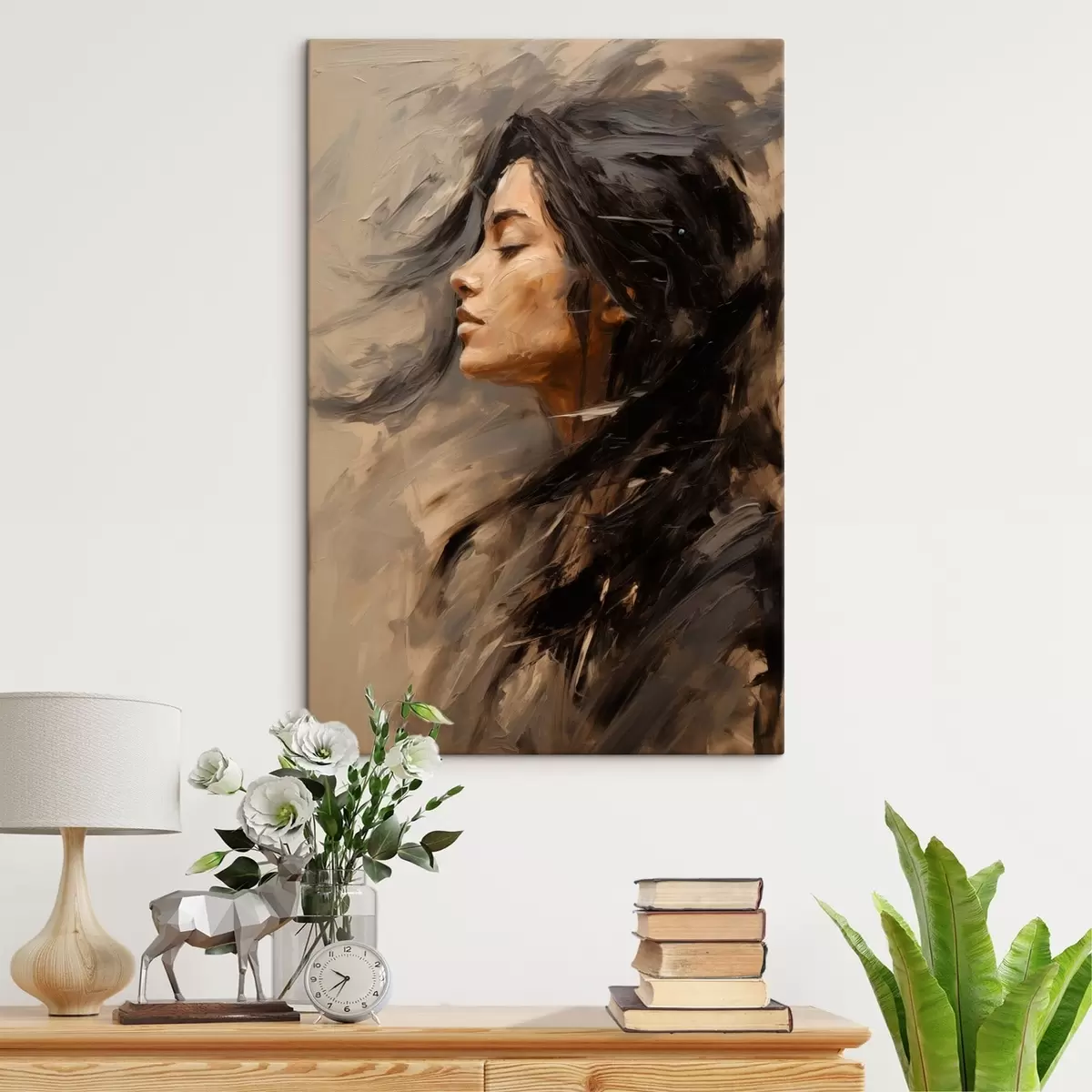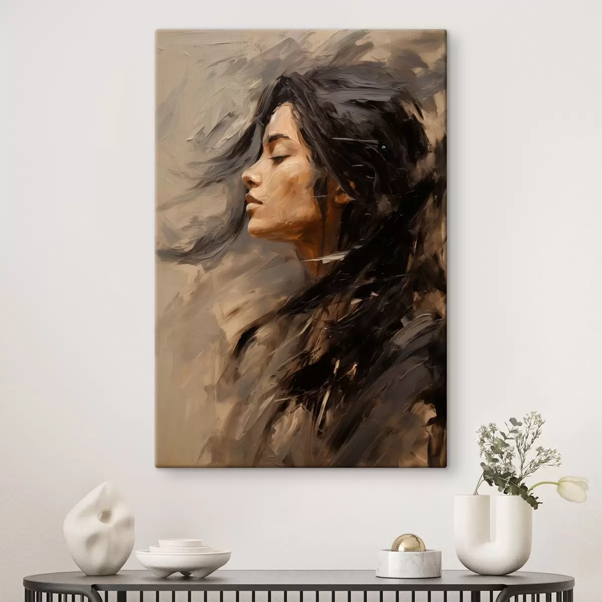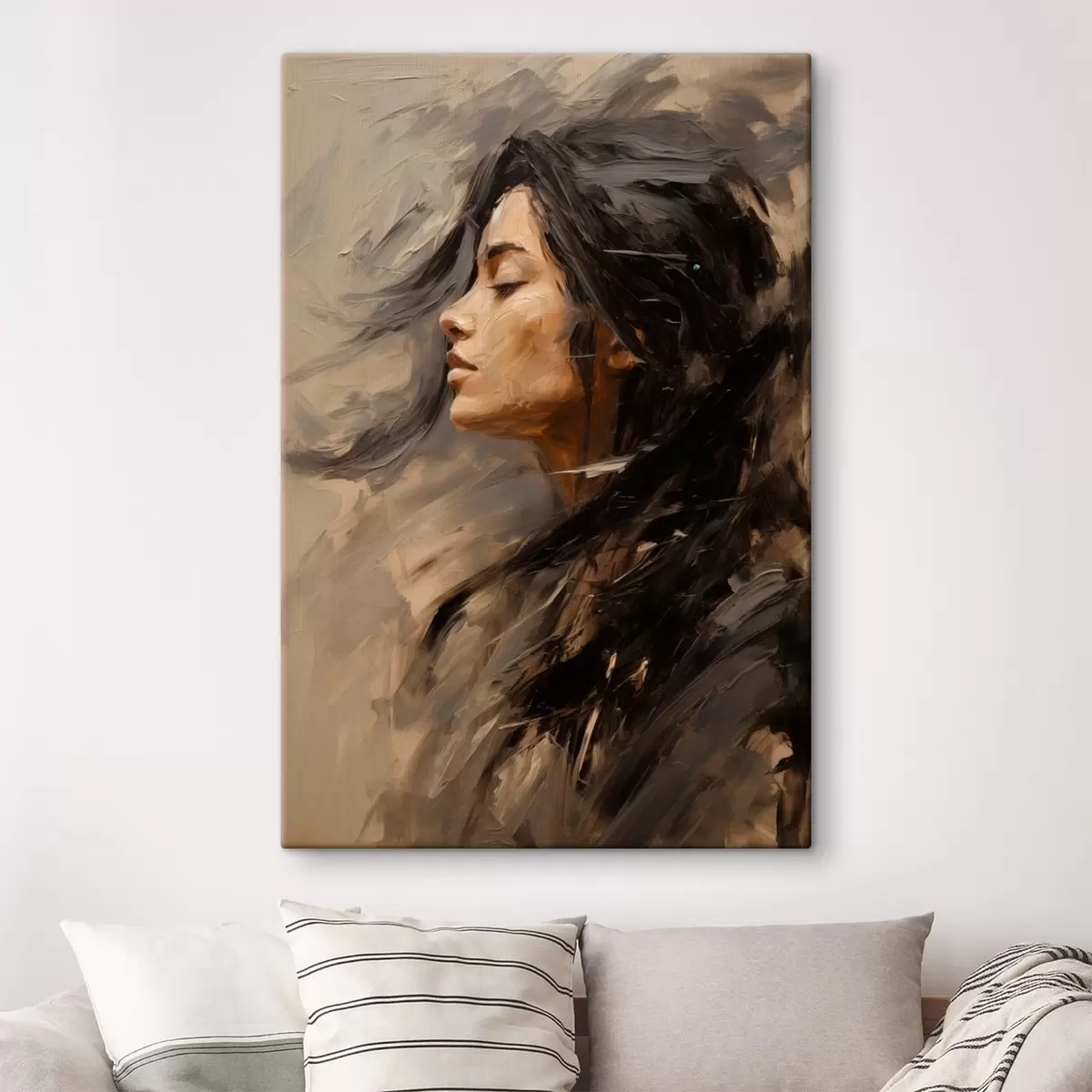 Cuadros Perfil femenino pintado con trazos artísticos y tonos cálidos Nr s48621