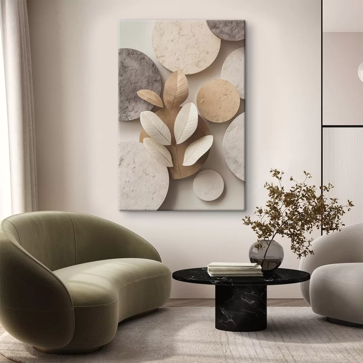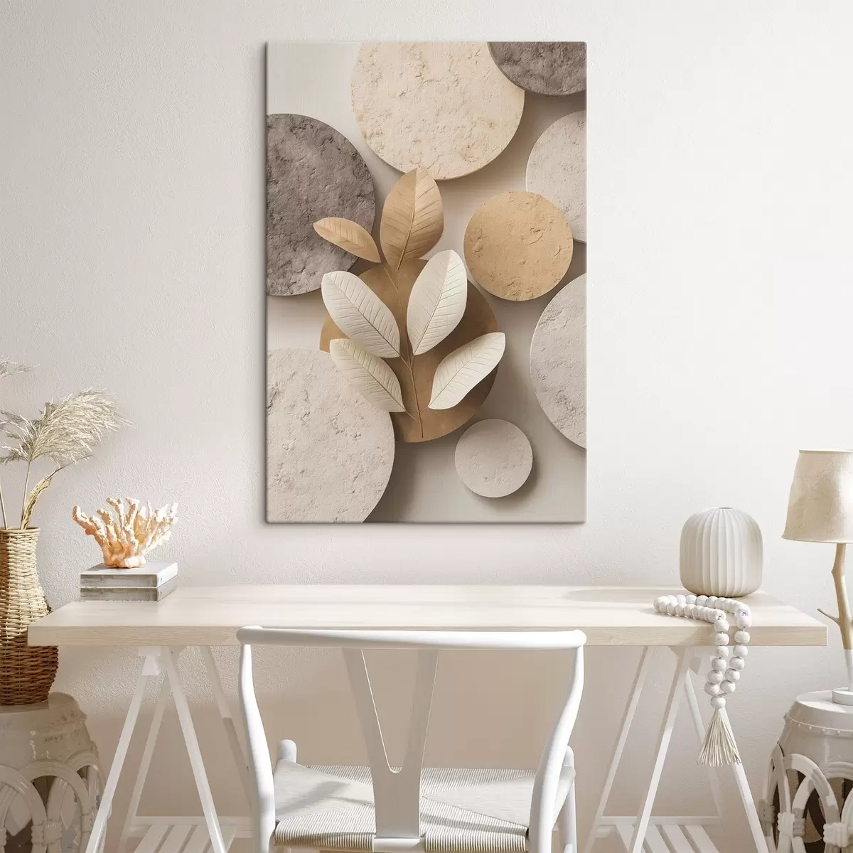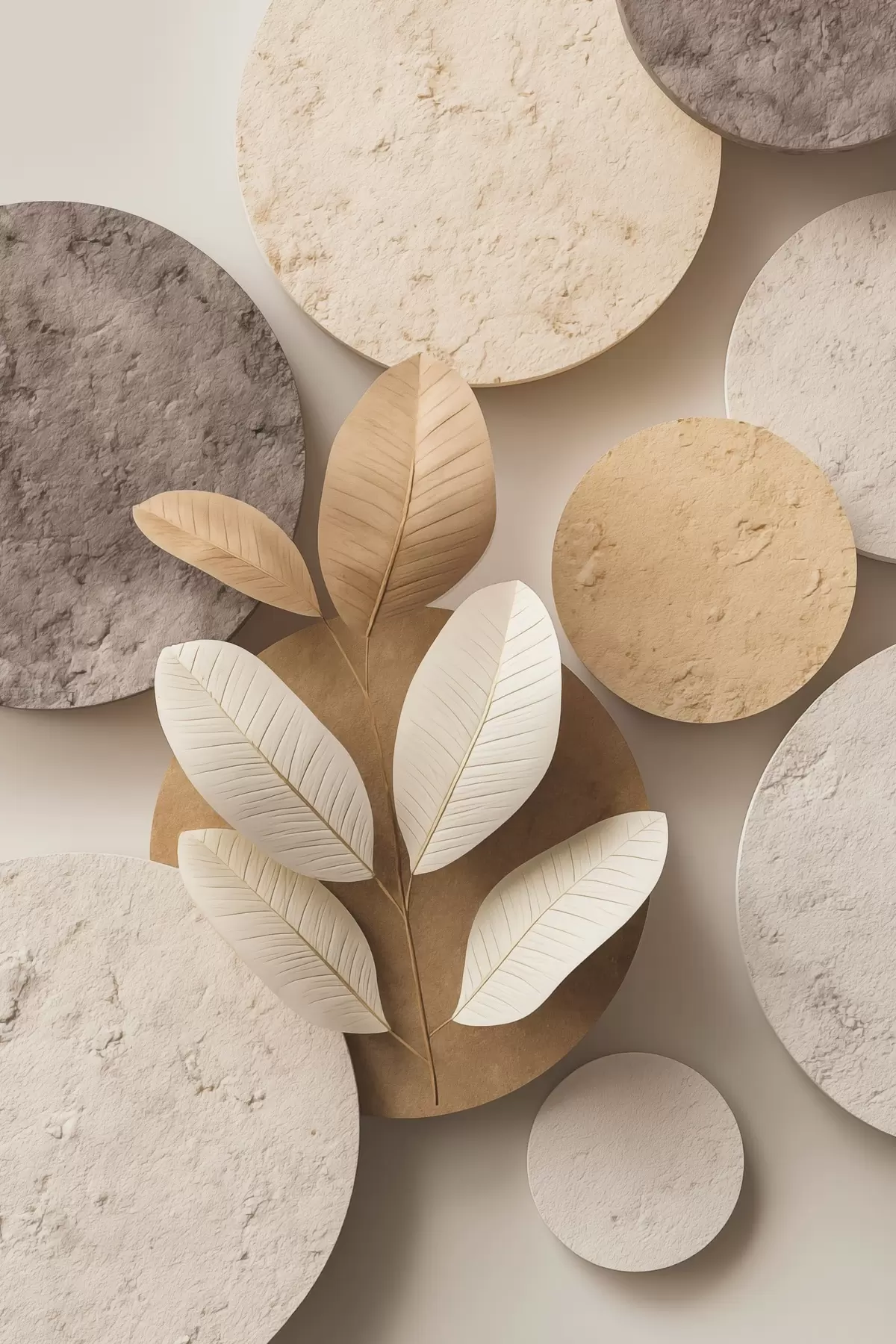 murales de pared Una composición con hojas y círculos s48691