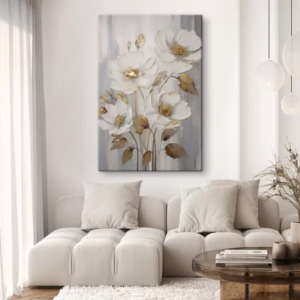 Cuadros Flores blancas con toques amarillos sobre un fondo texturizado Nr s48722