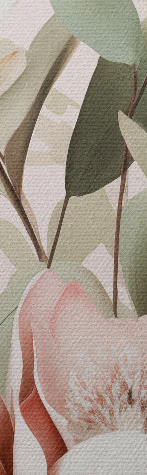 murales de pared Un ramo de flores en tonos pastel con hojas de eucalipto, sobre un fondo rosa pálido s48727