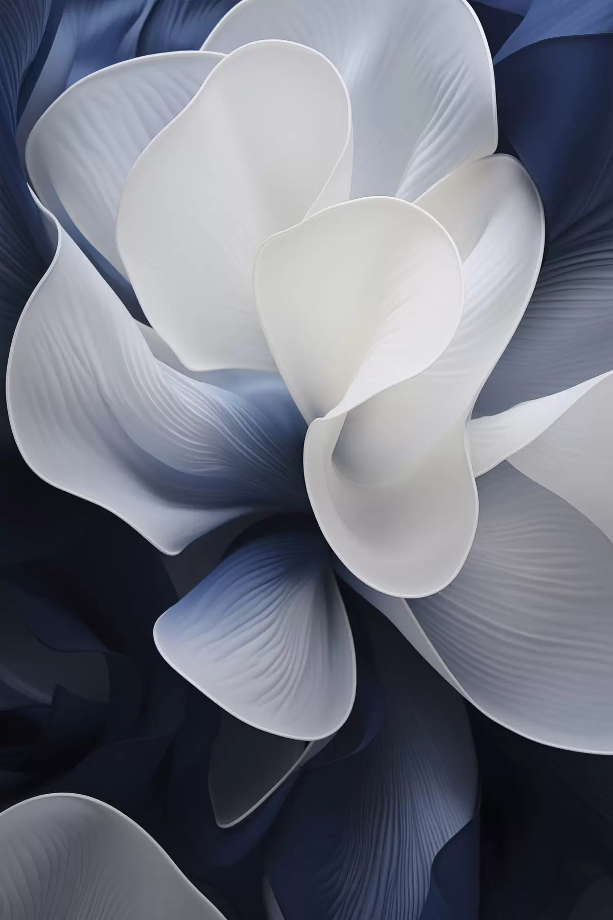 murales de pared Pétalos de flores abstractos en azul y blanco sobre fondo oscuro s48732