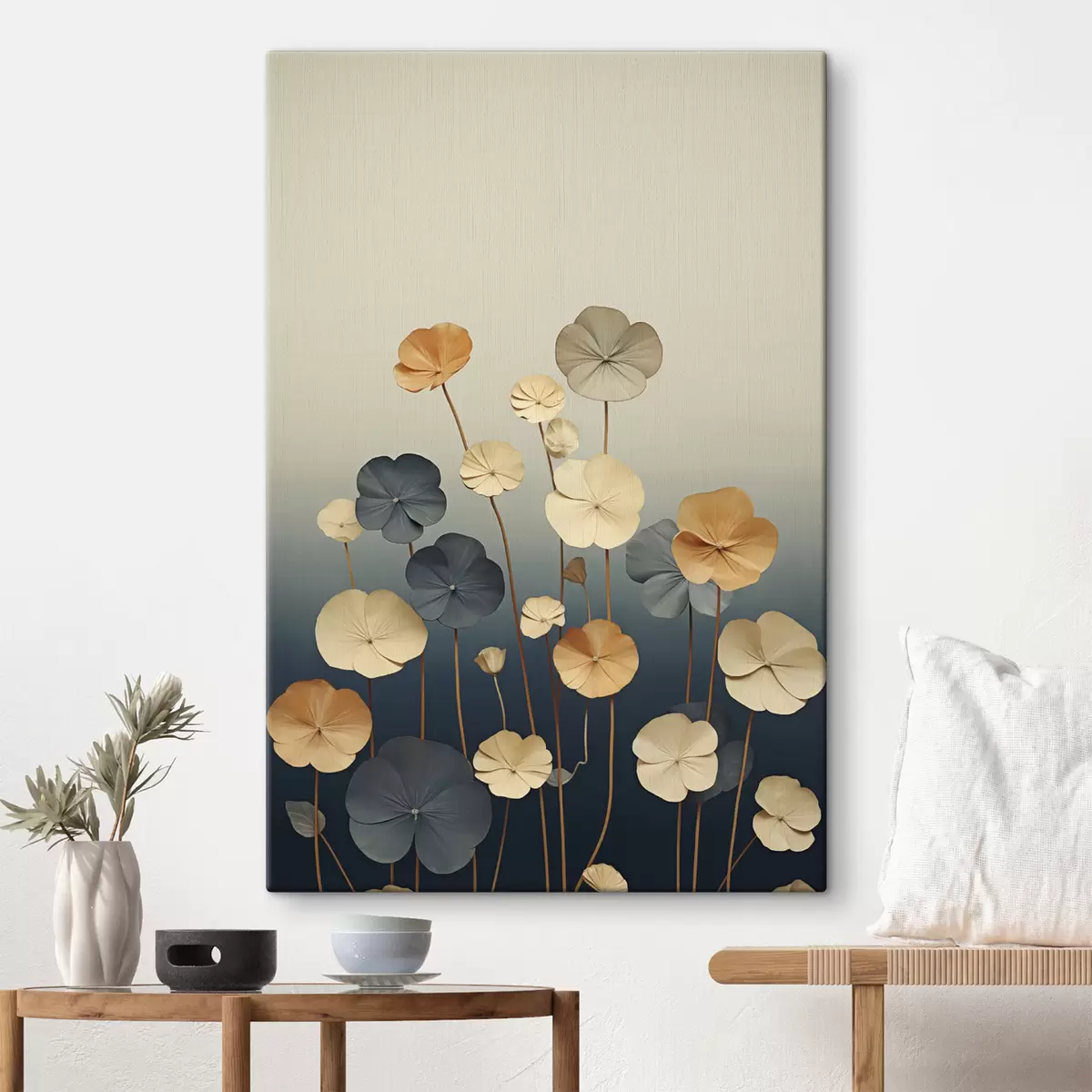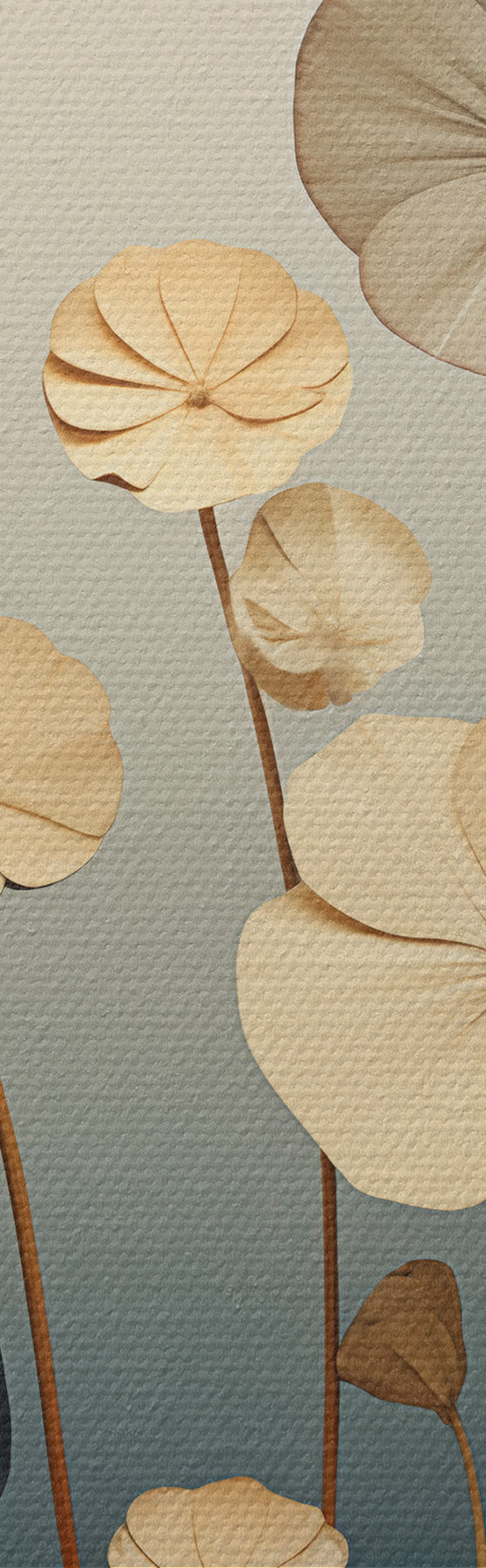 Cuadros Hojas de nenúfar sobre un fondo en tonos apagados de beige y azul oscuro Nr s48733