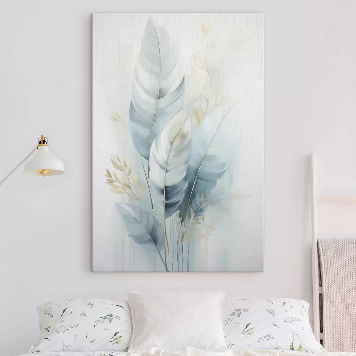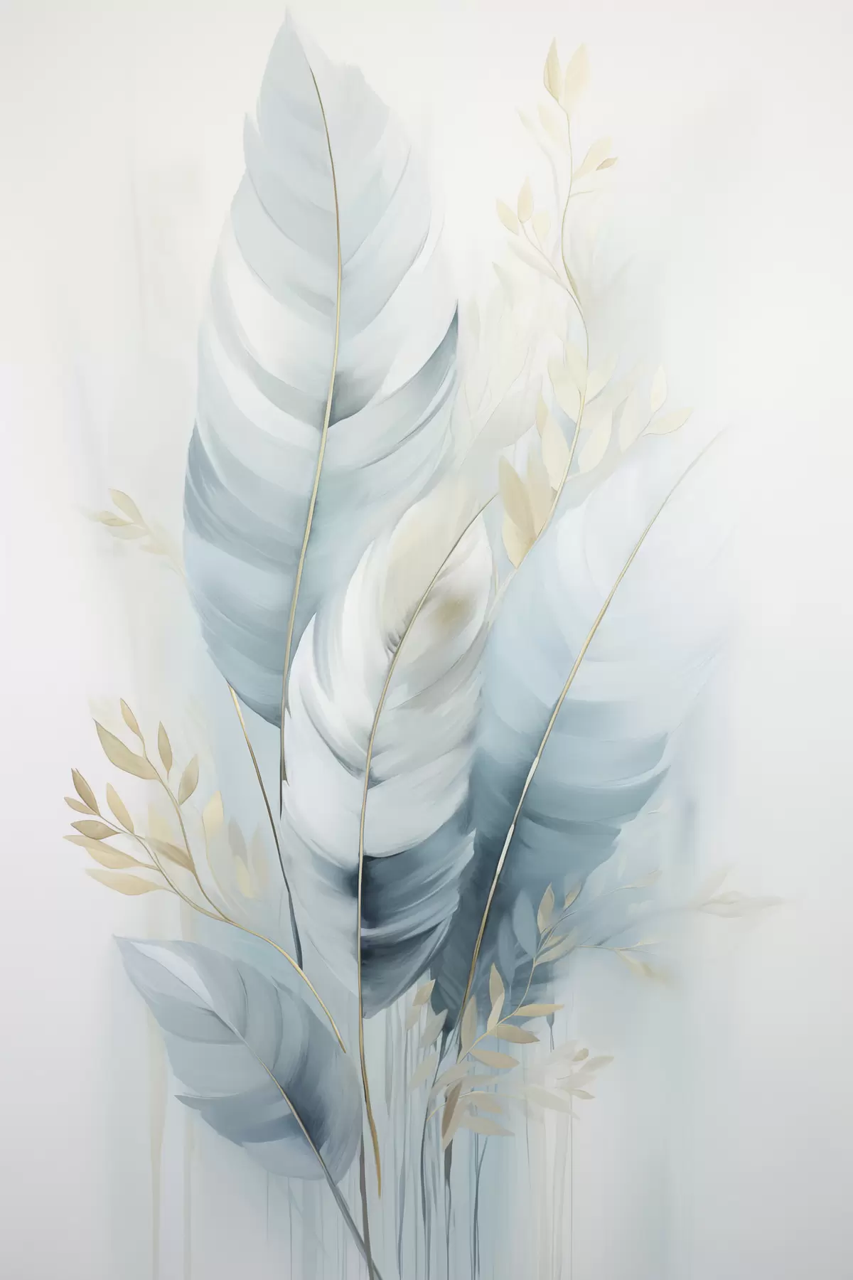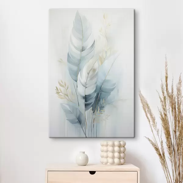 Cuadros Plumas grandes y suaves en tonos azules y blancos con delicadas hojas de color beige Nr s48749