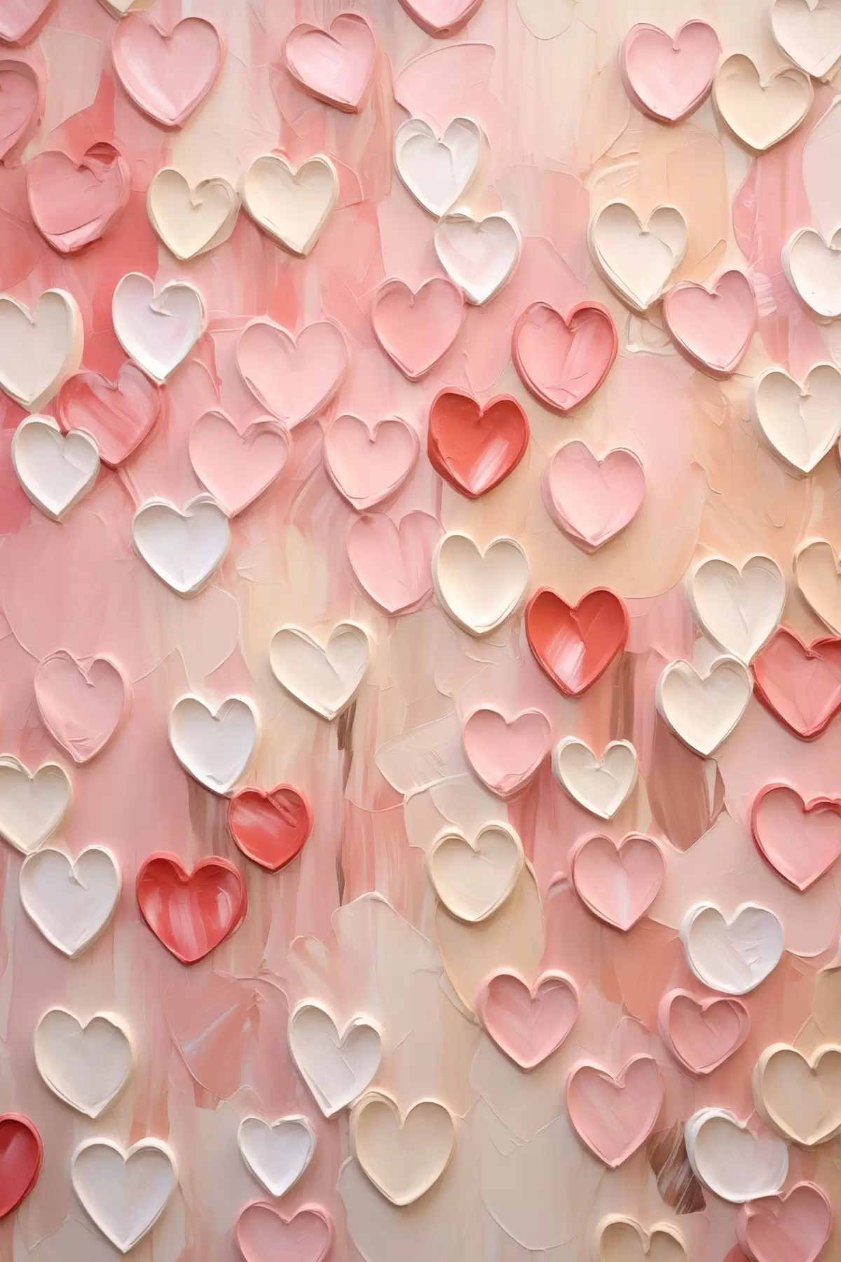 murales de pared Corazones en distintos tonos de melocotón y rosa, con un estilo texturizado y pintado s48752