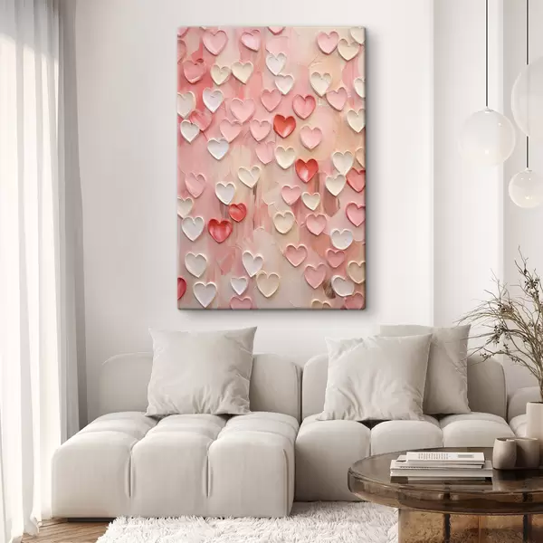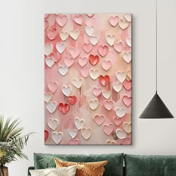 Cuadros Corazones en distintos tonos de melocotón y rosa, con un estilo texturizado y pintado Nr s48752