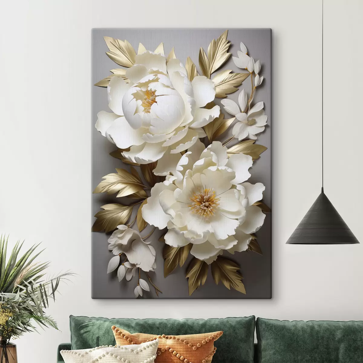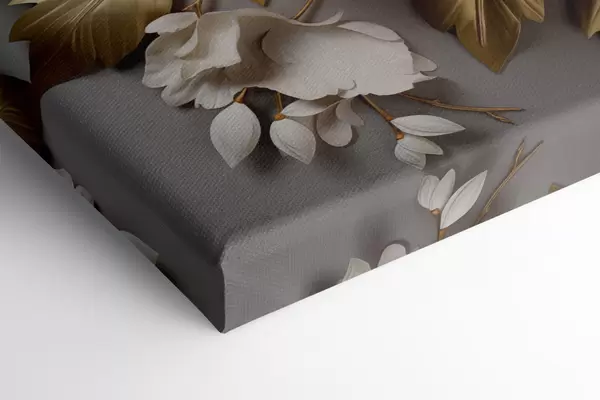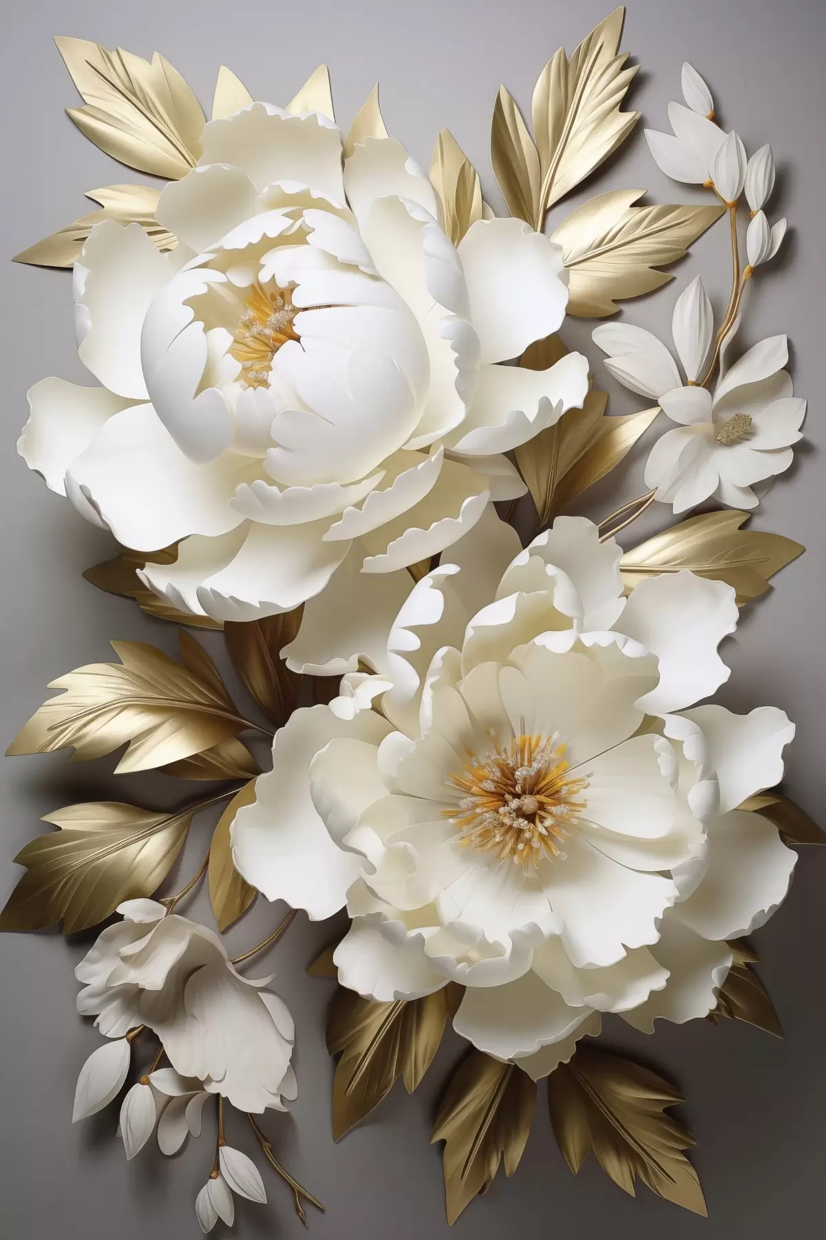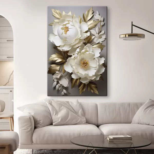 Cuadros Grandes peonías blancas con hojas amarillas sobre un fondo gris Nr s48753