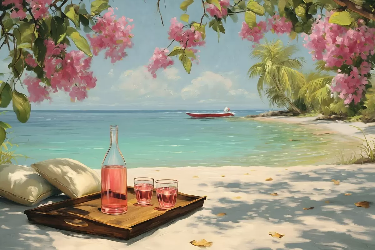 Cuadros una playa azul y sangría Nr s48793