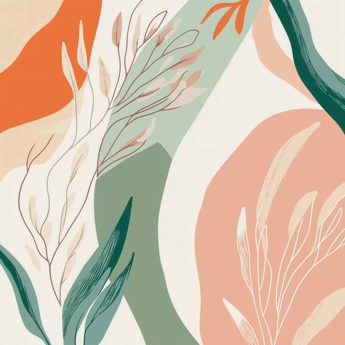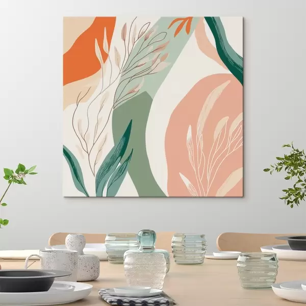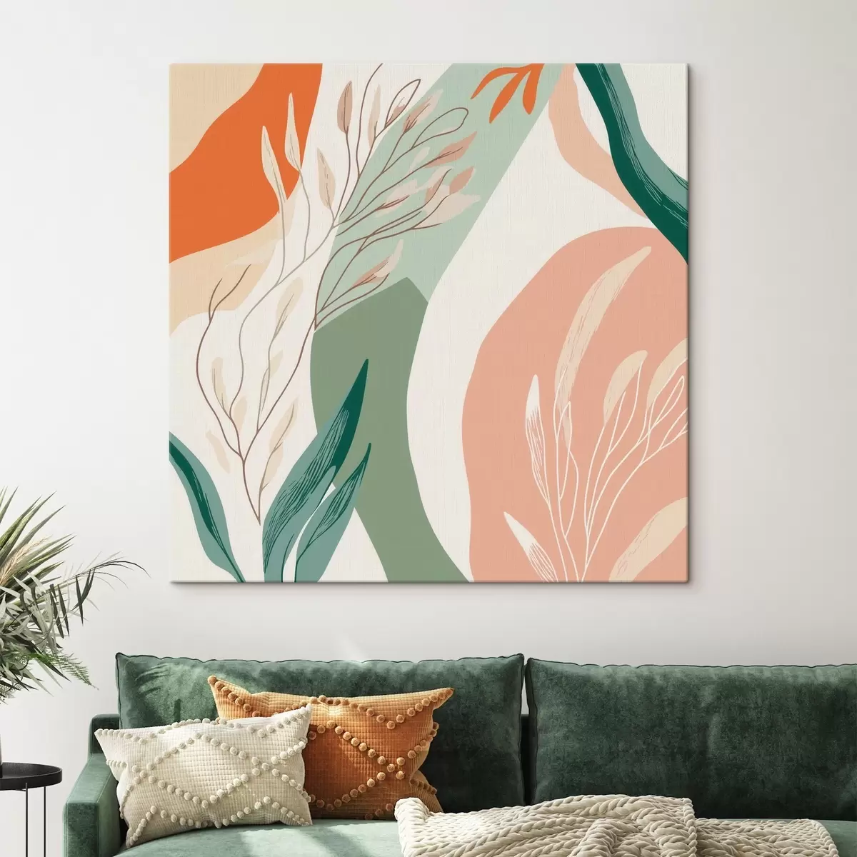 Cuadros Arte botánico con formas suaves en una paleta de tonos verde coral Nr s48840