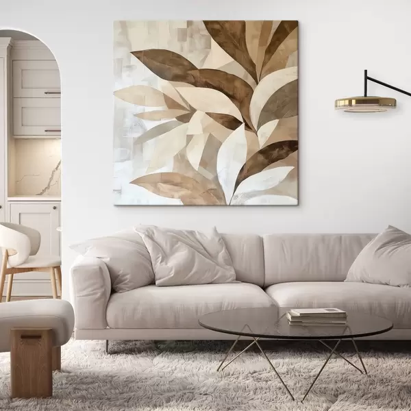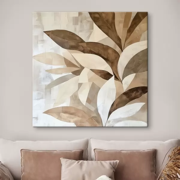 Cuadros Composición floral abstracta con hojas grandes en tonos marrón-beige Nr s48848