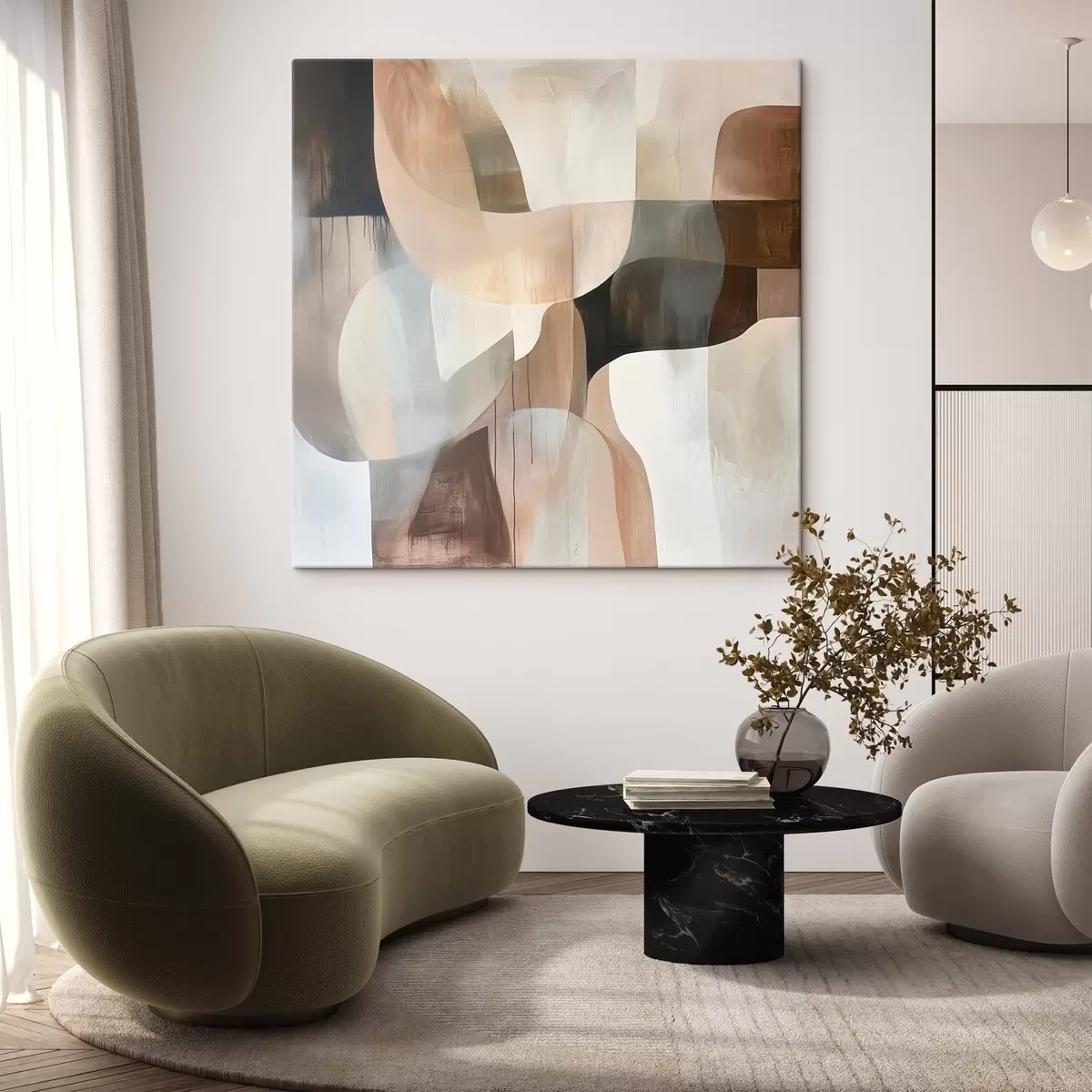 Cuadros Composición abstracta en una cálida paleta de tonos beige y coral Nr s48859