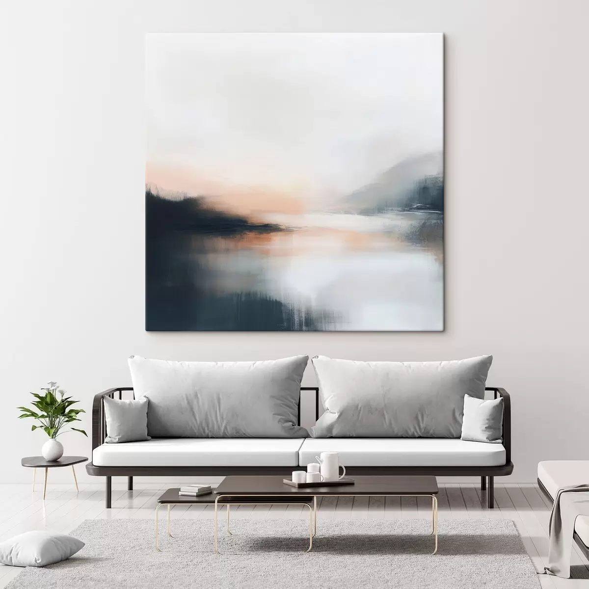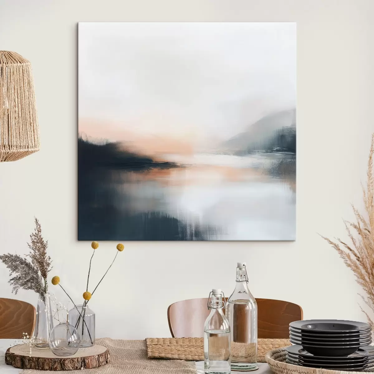 Cuadros Paisaje abstracto y brumoso en una cálida paleta de tonos beige y coral Nr s48861