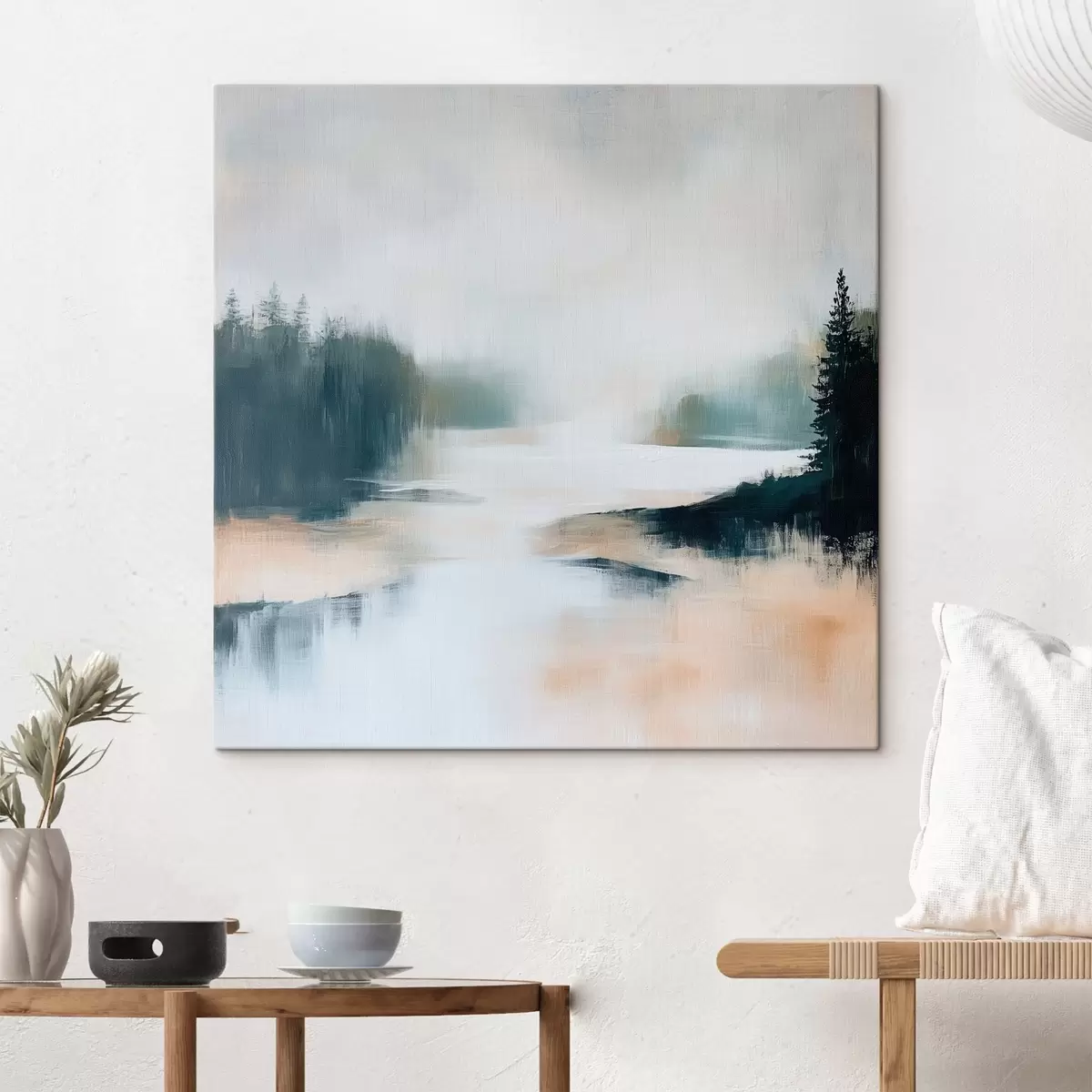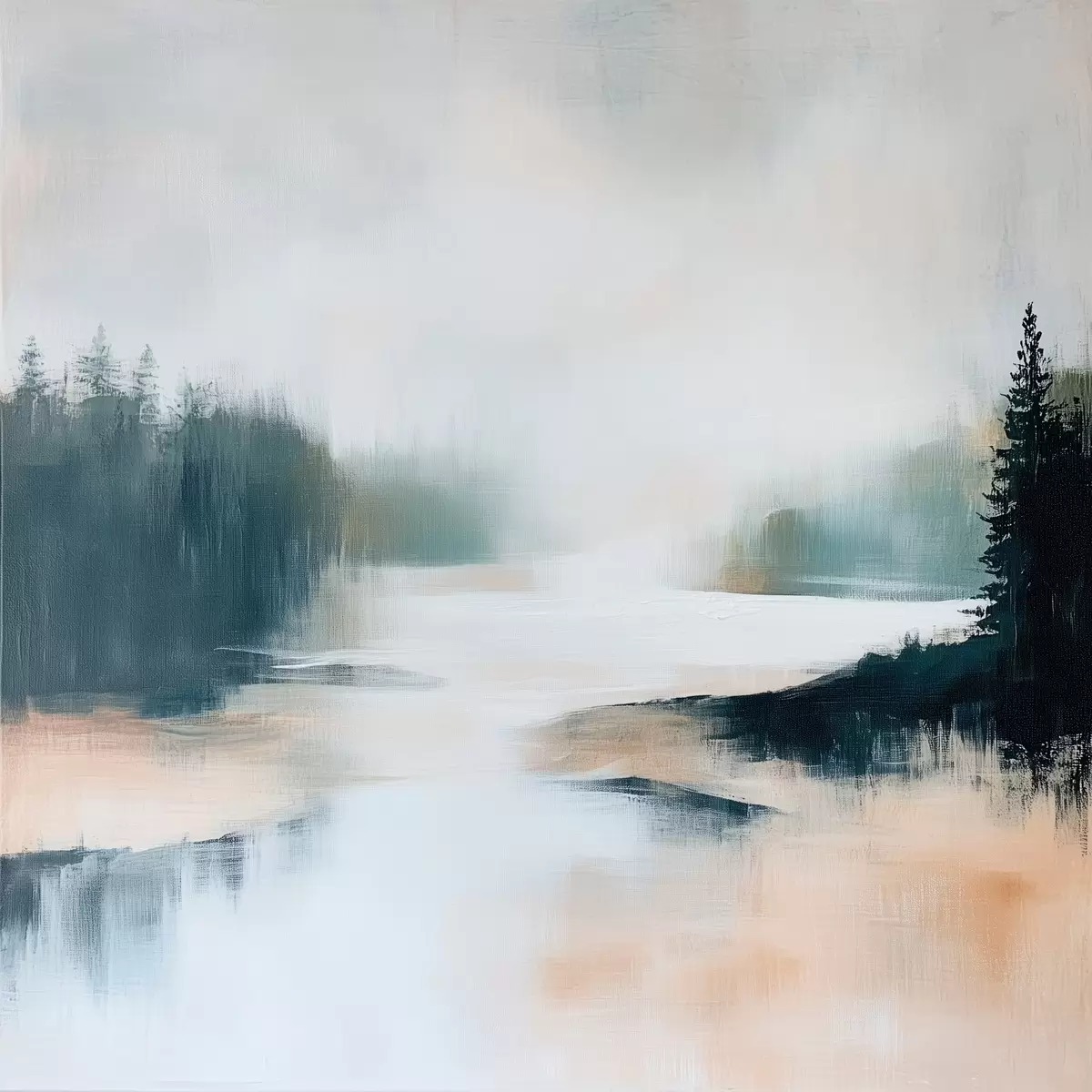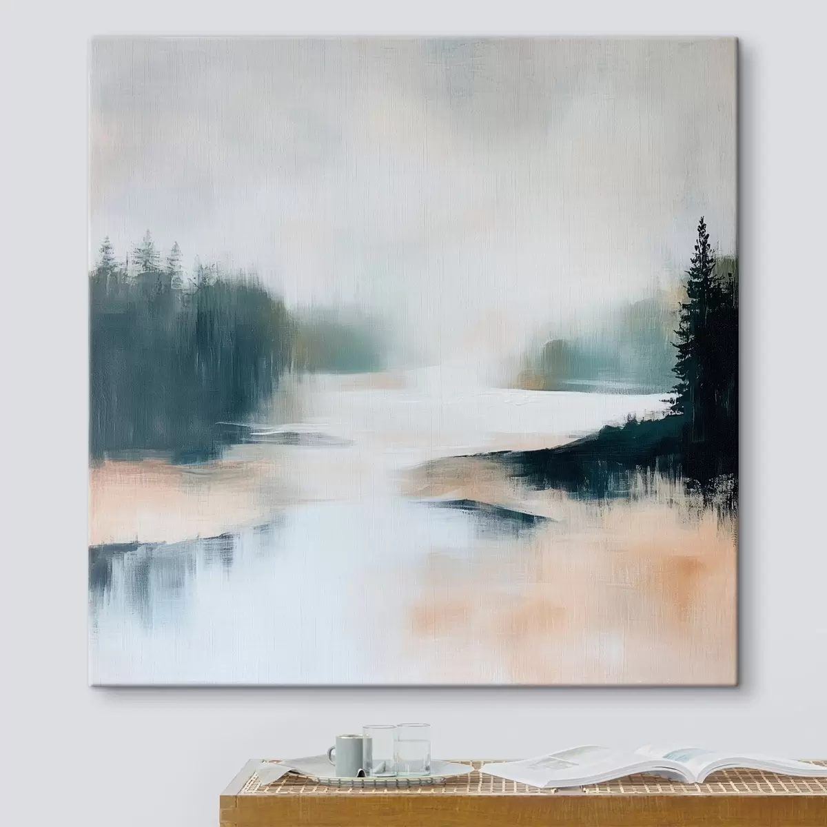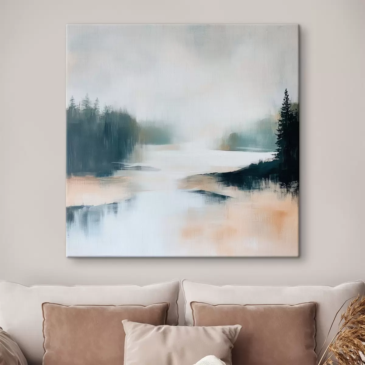 Cuadros Paisaje forestal abstracto en tonos rosas y azules, pintado en un estilo contemporáneo Nr s48862