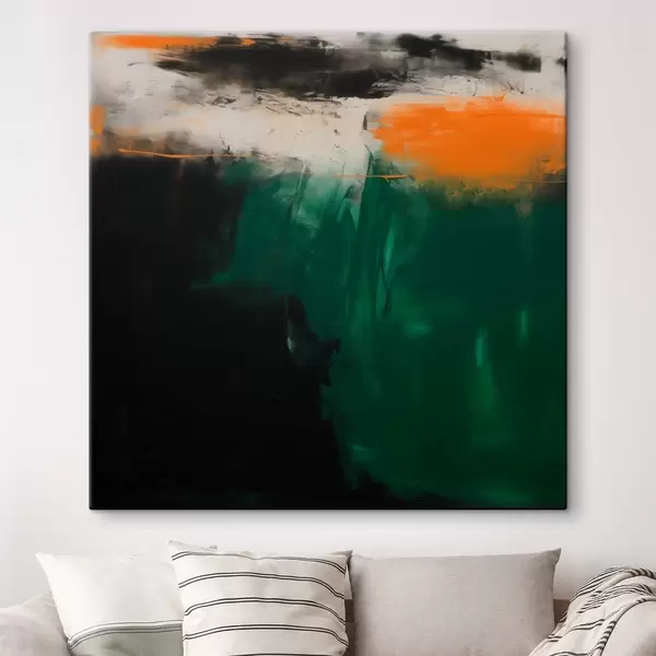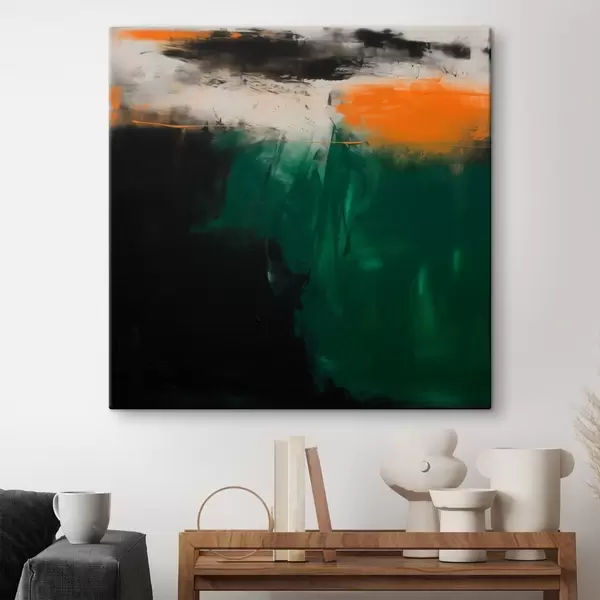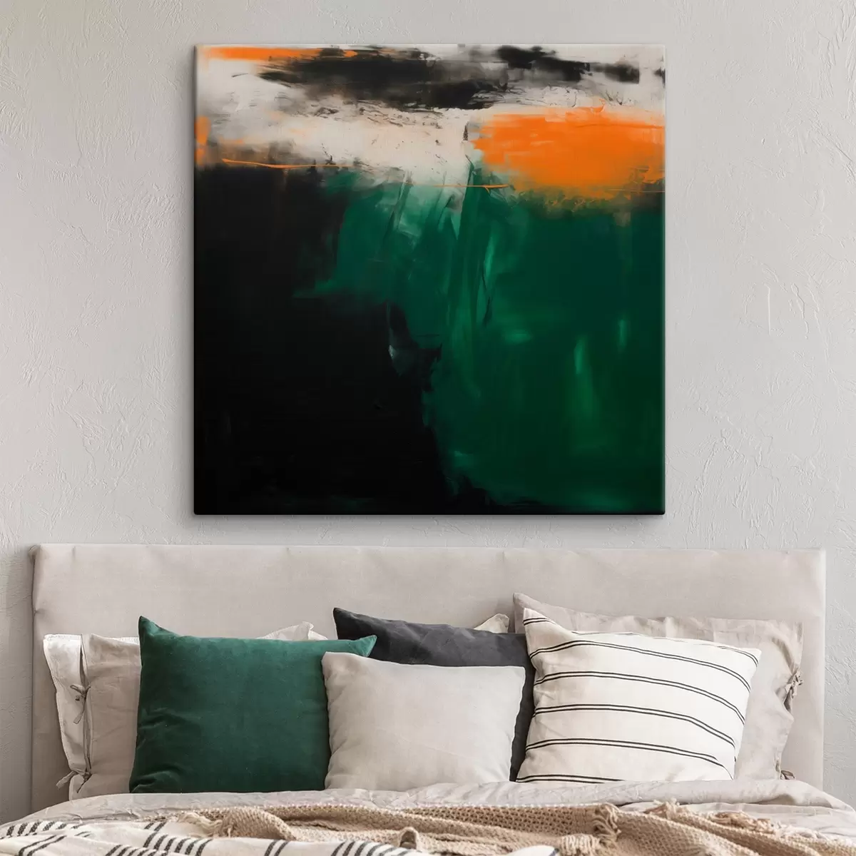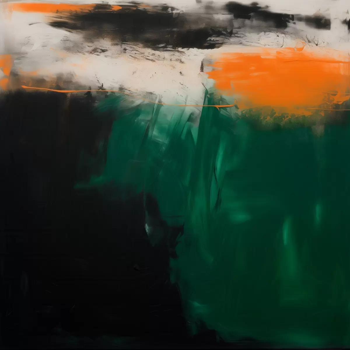 Cuadros Una obra abstracta con toques anaranjados y pinceladas de color verde intenso, en un estilo pictórico contemporáneo Nr s48865