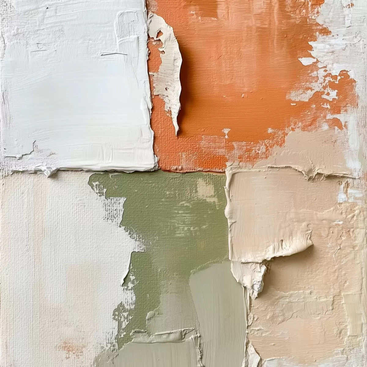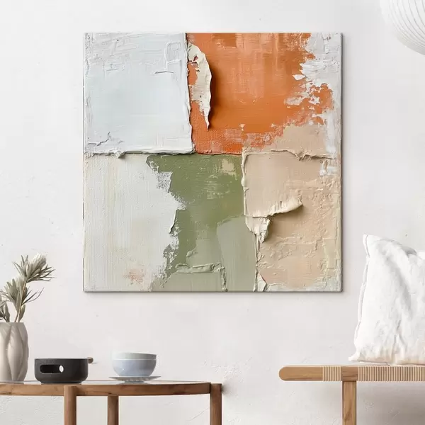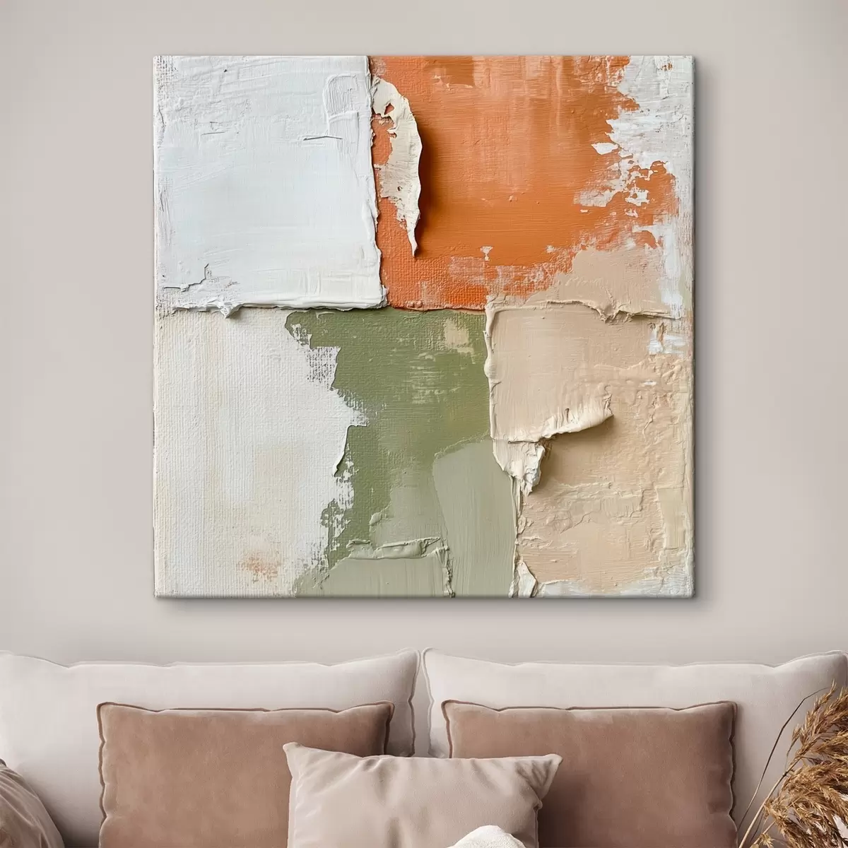 Cuadros Combinación de tonos naranjas y oliva en un estilo pictórico contemporáneo Nr s48867