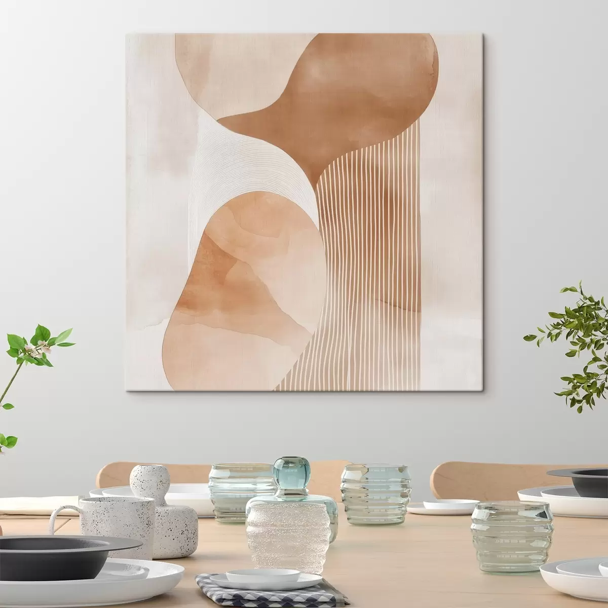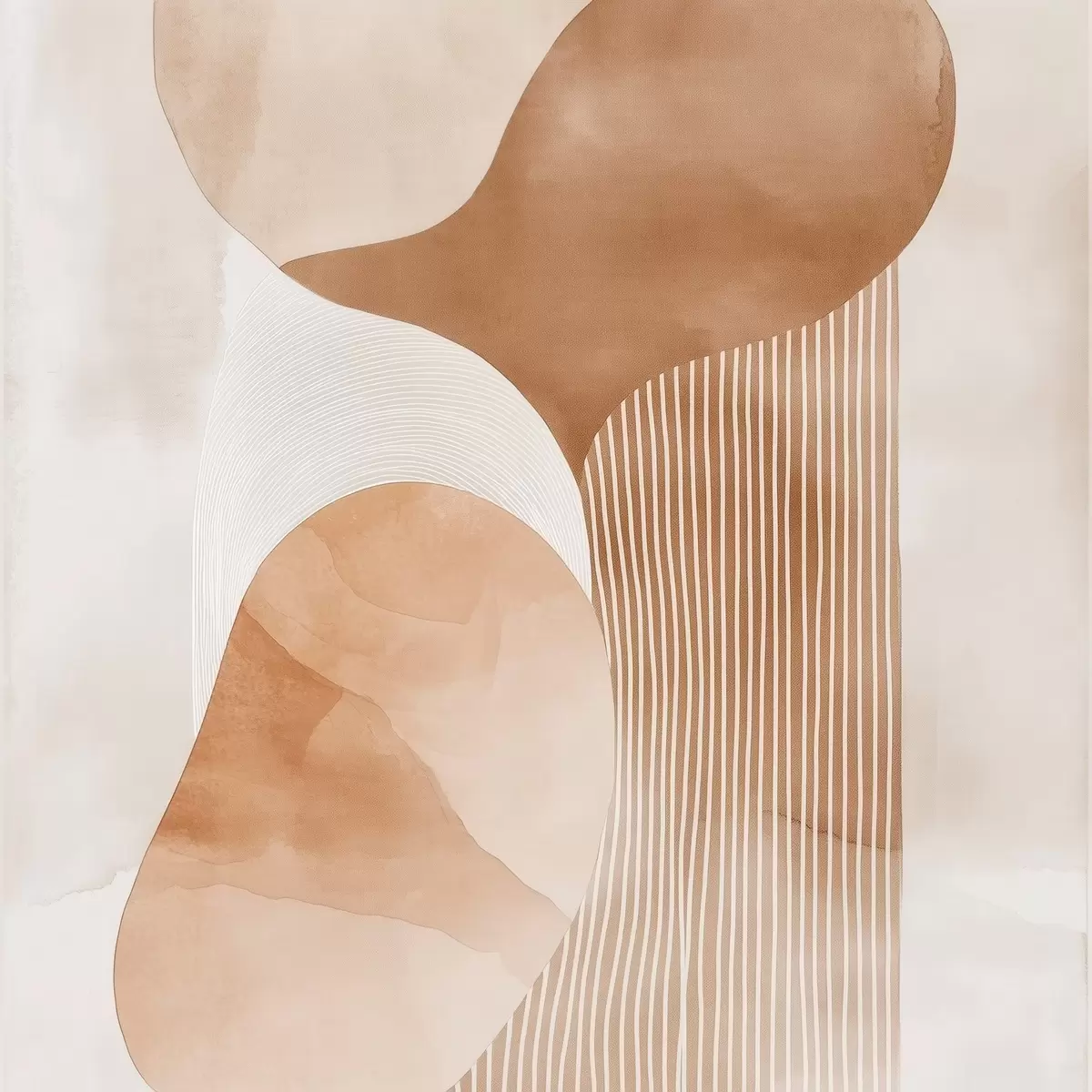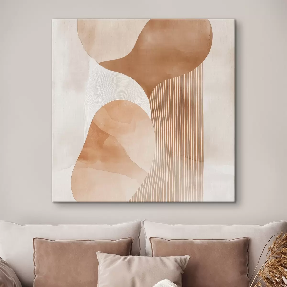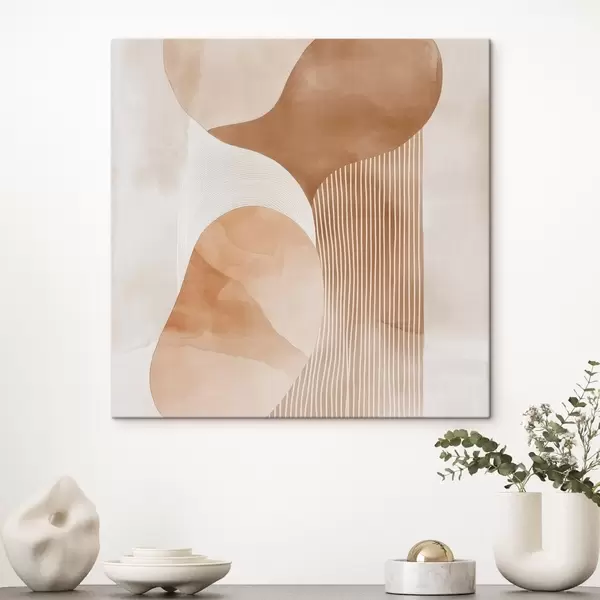 Cuadros Arte decorativo en una cálida gama de tonos beige y coral con efecto acuarela Nr s48870