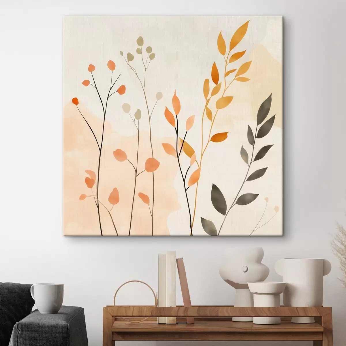 Cuadros Composición al pastel con delicado follaje en un estilo pictórico contemporáneo Nr s48873