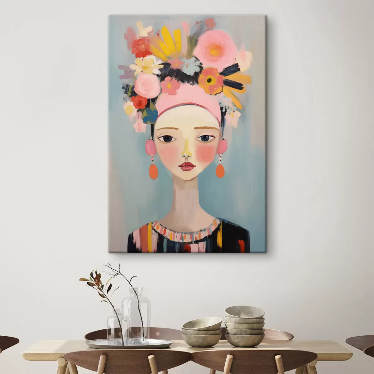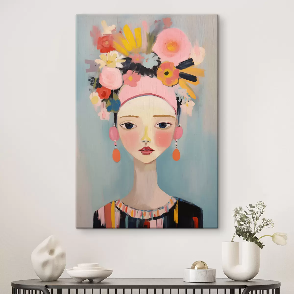 Cuadros Retrato de una mujer con flores en el pelo, estilo abstracto Nr s48936