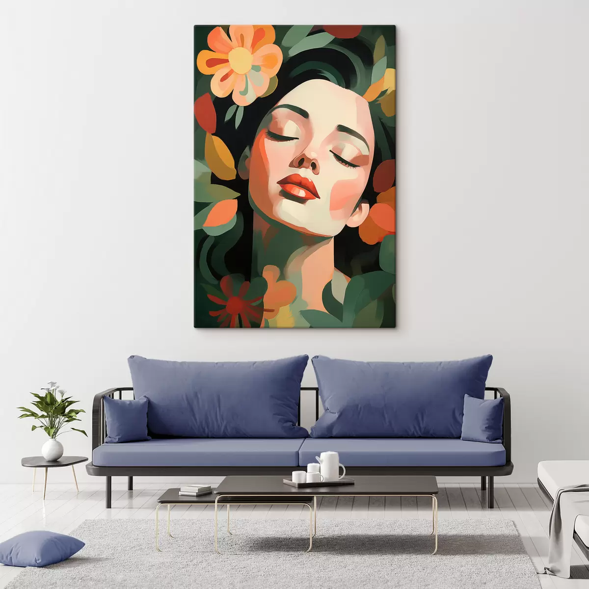 murales de pared Retrato femenino con flores s48959