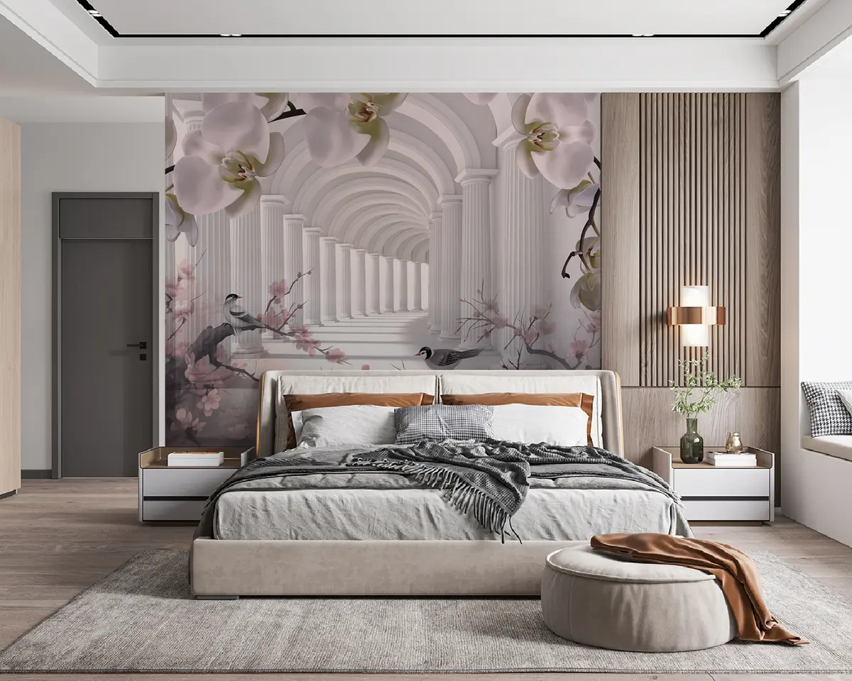 murales de pared Hermoso túnel con pájaros y orquídeas. u94513