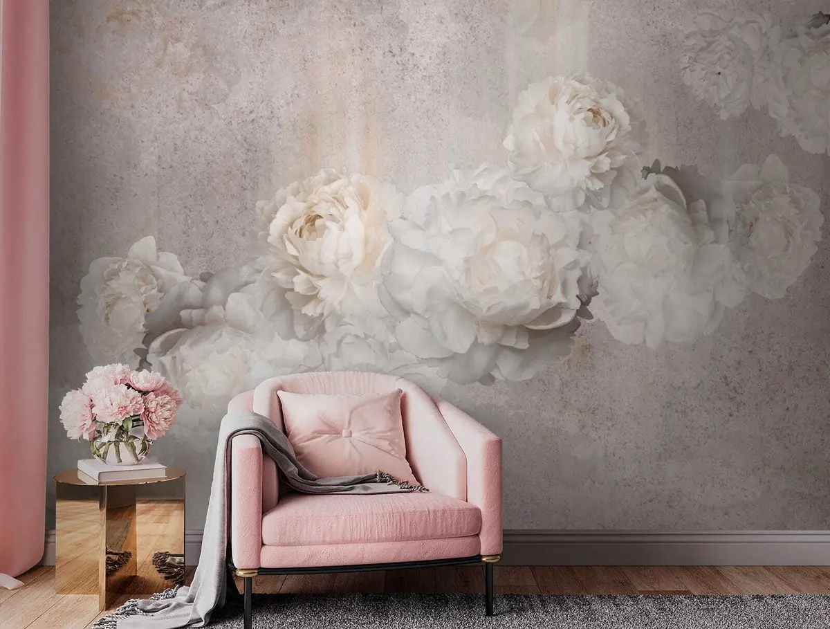 Fotomurales Flores vintage sobre un fondo gris Nr. u61610