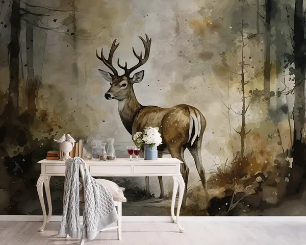 Fotomurales Ciervos dibujados a mano en el bosque Nr. u95410