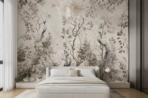 Fotomurales Un jardín con pájaros frágiles, pavos reales Nr. u94850