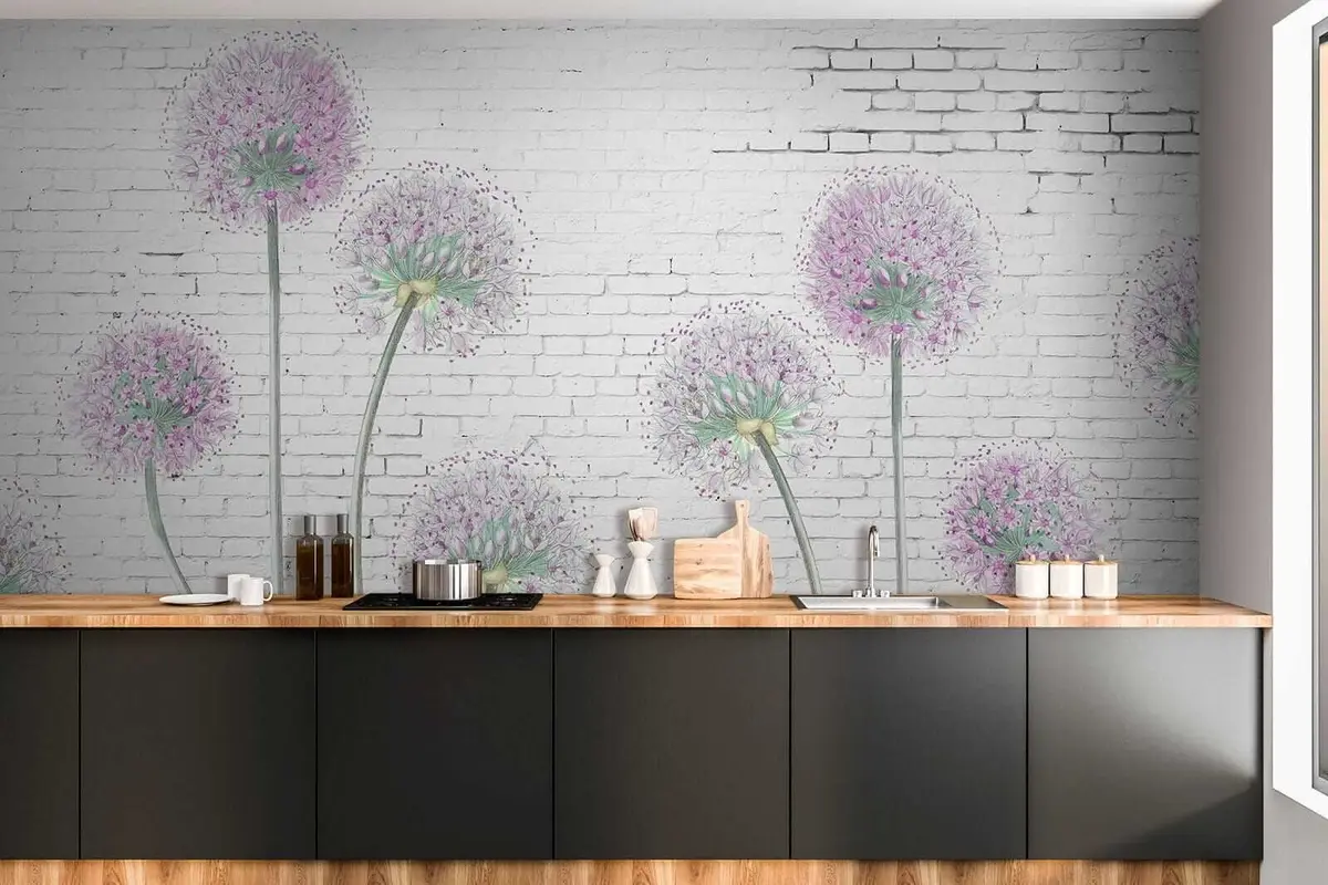 Fotomurales Dientes de león contra el fondo de una pared de ladrillos Nr. u05372