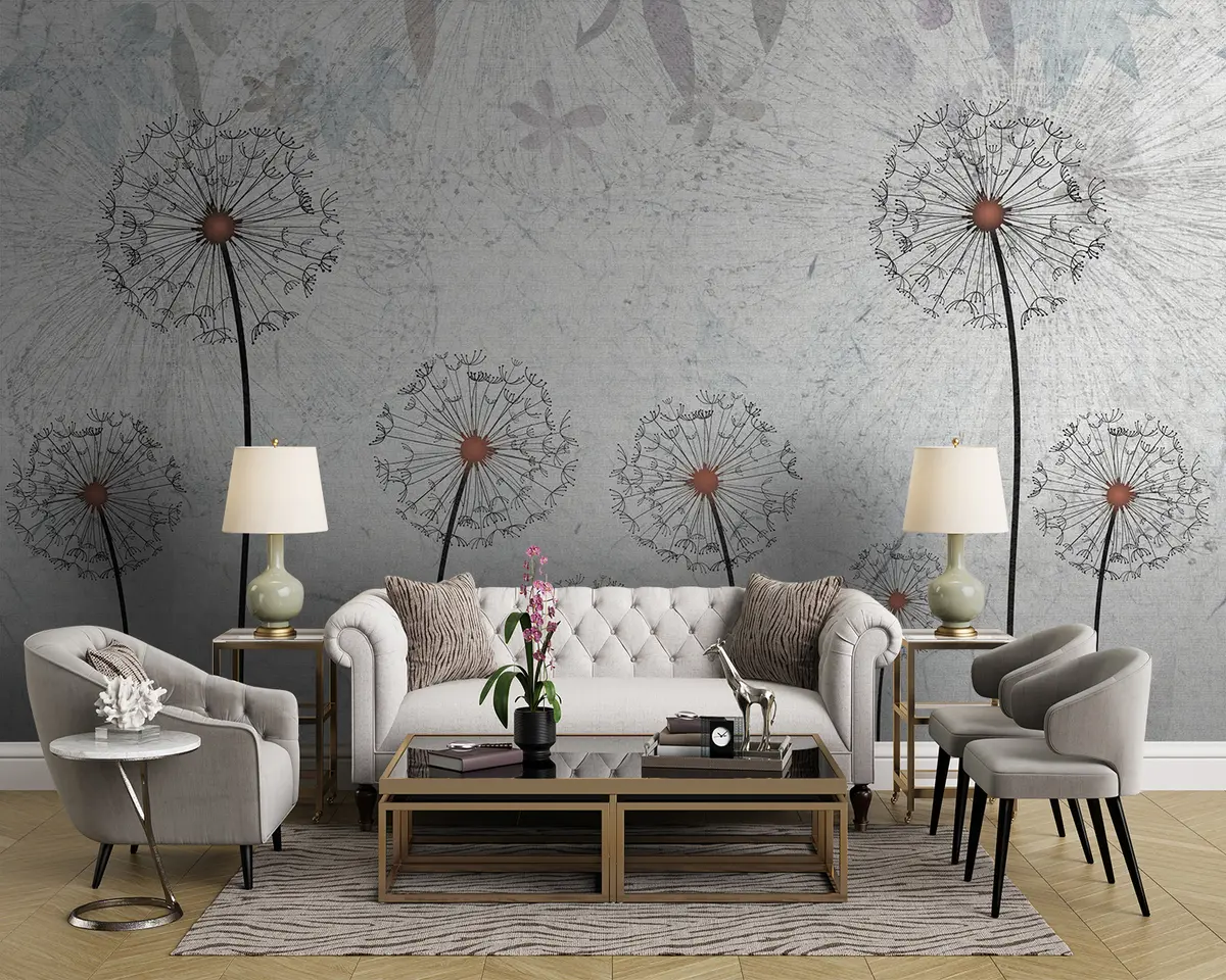 Fotomurales Dientes de león en un fondo gris claro Nr. u93968