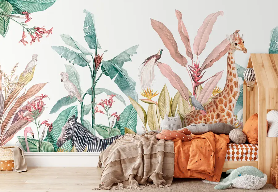 Para las habitaciones de los niños, los diseñadores de murales infantiles usan tramas coloridas y colores brillantes, mientras que cada color tiene su propio significado: rojo: le da al bebé más fuerza y energía, amarillo y naranja: brinda diversión y un estado de ánimo positivo, verde: tiene un efecto relajante, azul oscuro y azul claro: ayuda a prepararse para el trabajo creativo. Pero es mejor no usar blanco, gris y negro en la habitación de los niños. Es conveniente que puede comprar fotomurales listos para usar en la guardería, o también se puede imprimirlos por encargo. El precio del último será ligeramente superior, pero tu bebé obtendrá una exclusividad.