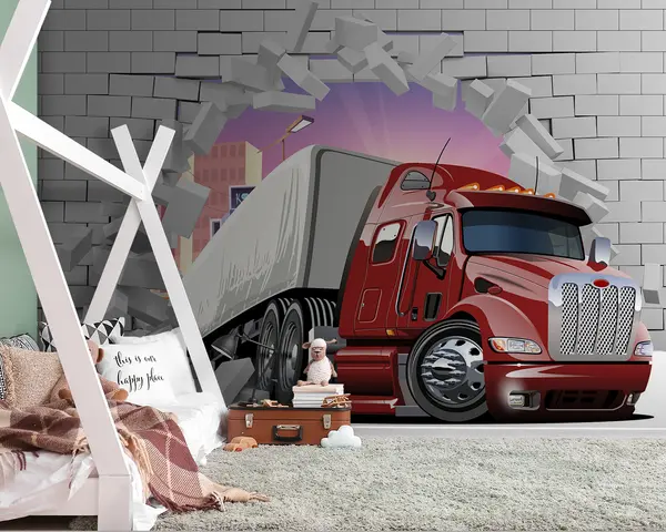 Fotomurales Camión en el fondo de una pared de ladrillo Nr. u93974