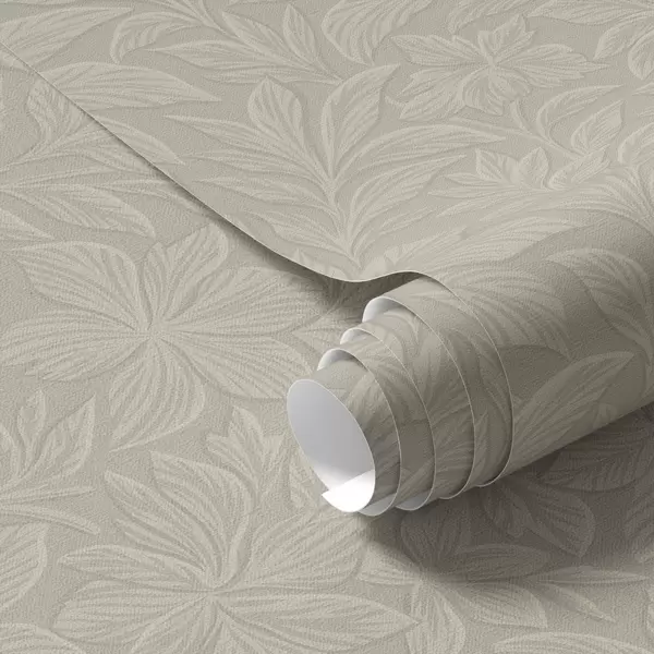 Papel pintado Siluetas de hojas en relieve, cálido color topo a00781