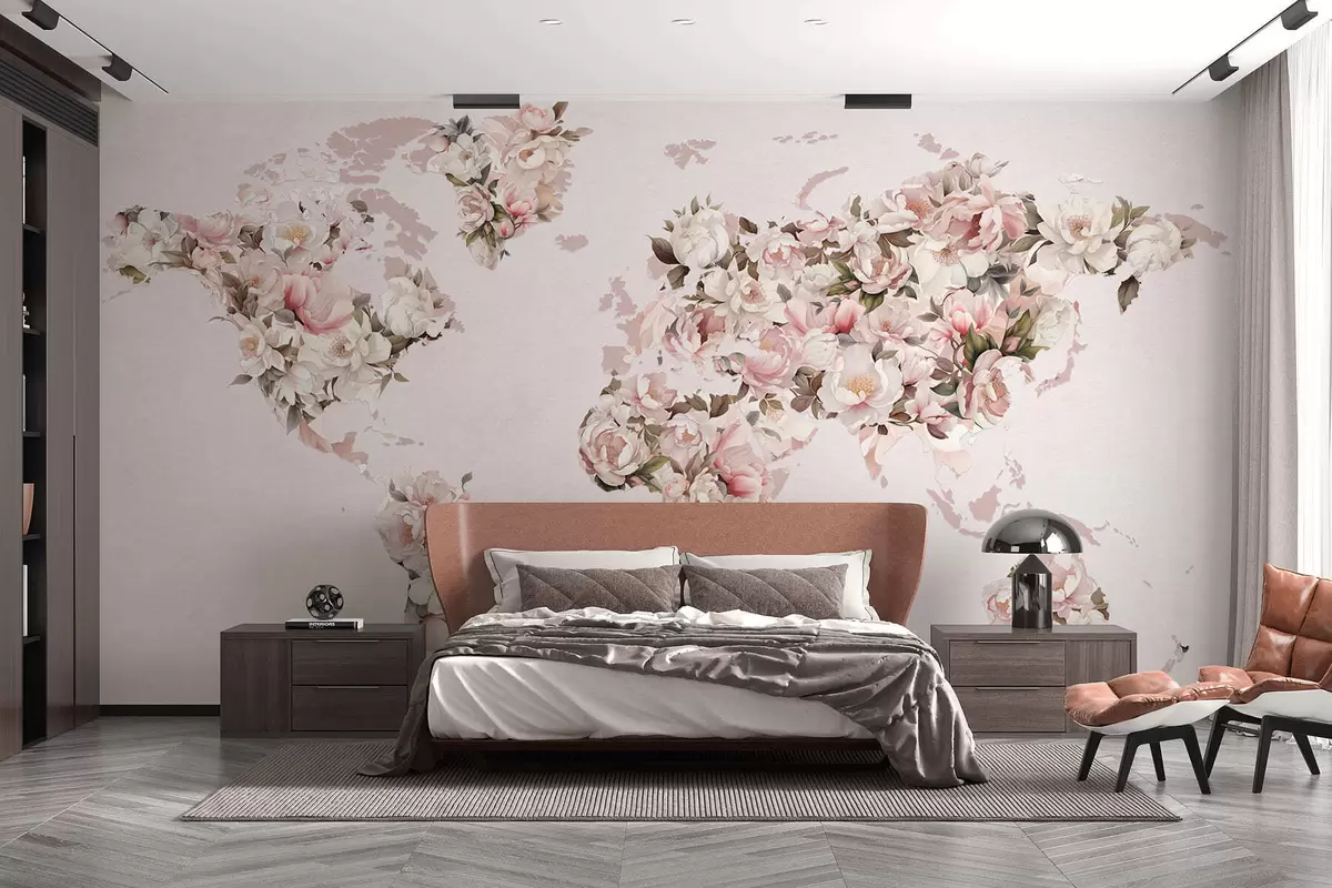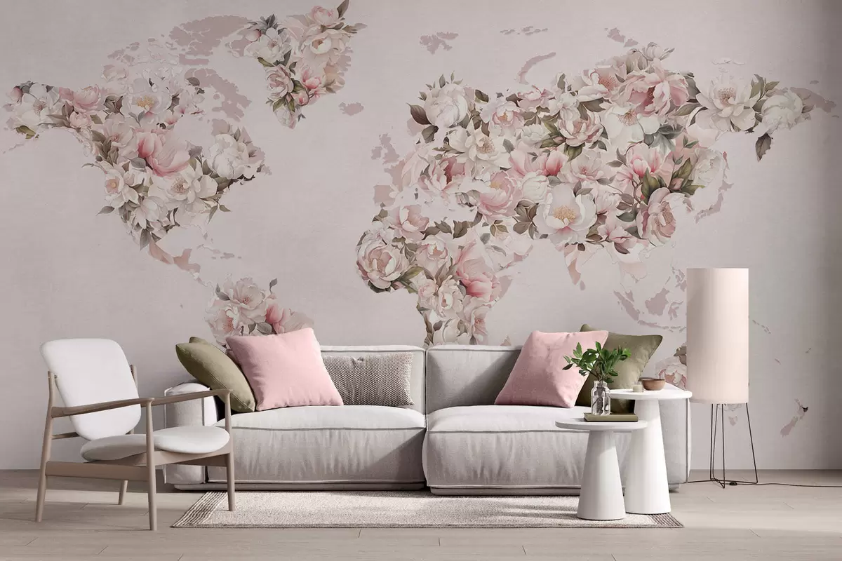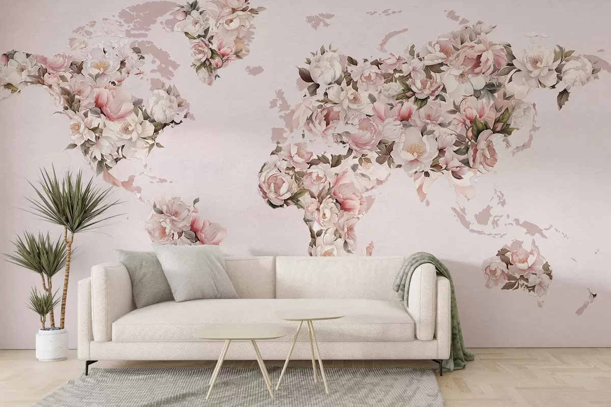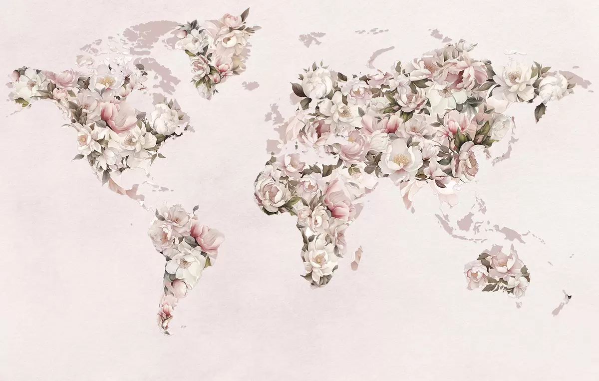 Fotomurales Un mapamundi rosa compuesto por grandes peonías blancas y rosas Nr. c00005