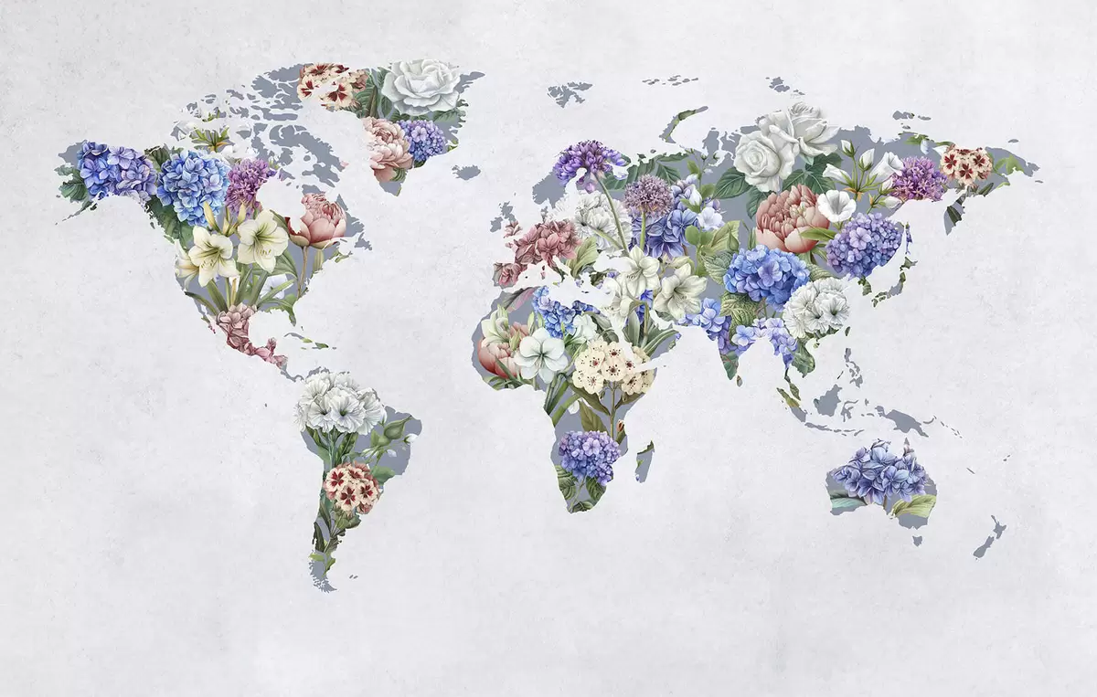 Fotomurales Un colorido mapa del mundo elaborado con una gran variedad de flores de vivos colores Nr. c00006