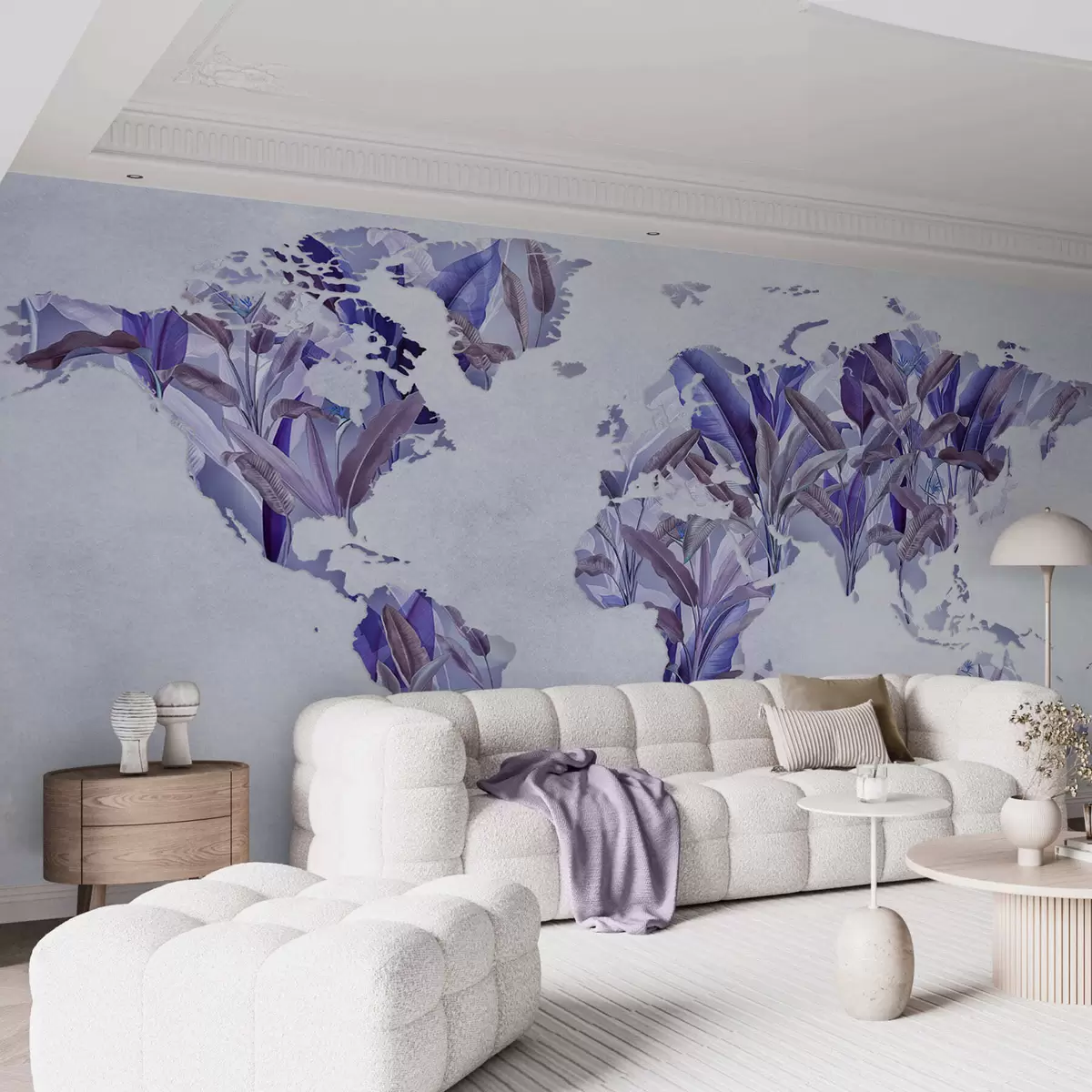 Fotomurales Un mapamundi morado hecho con hojas de plátano Nr. c00007v1