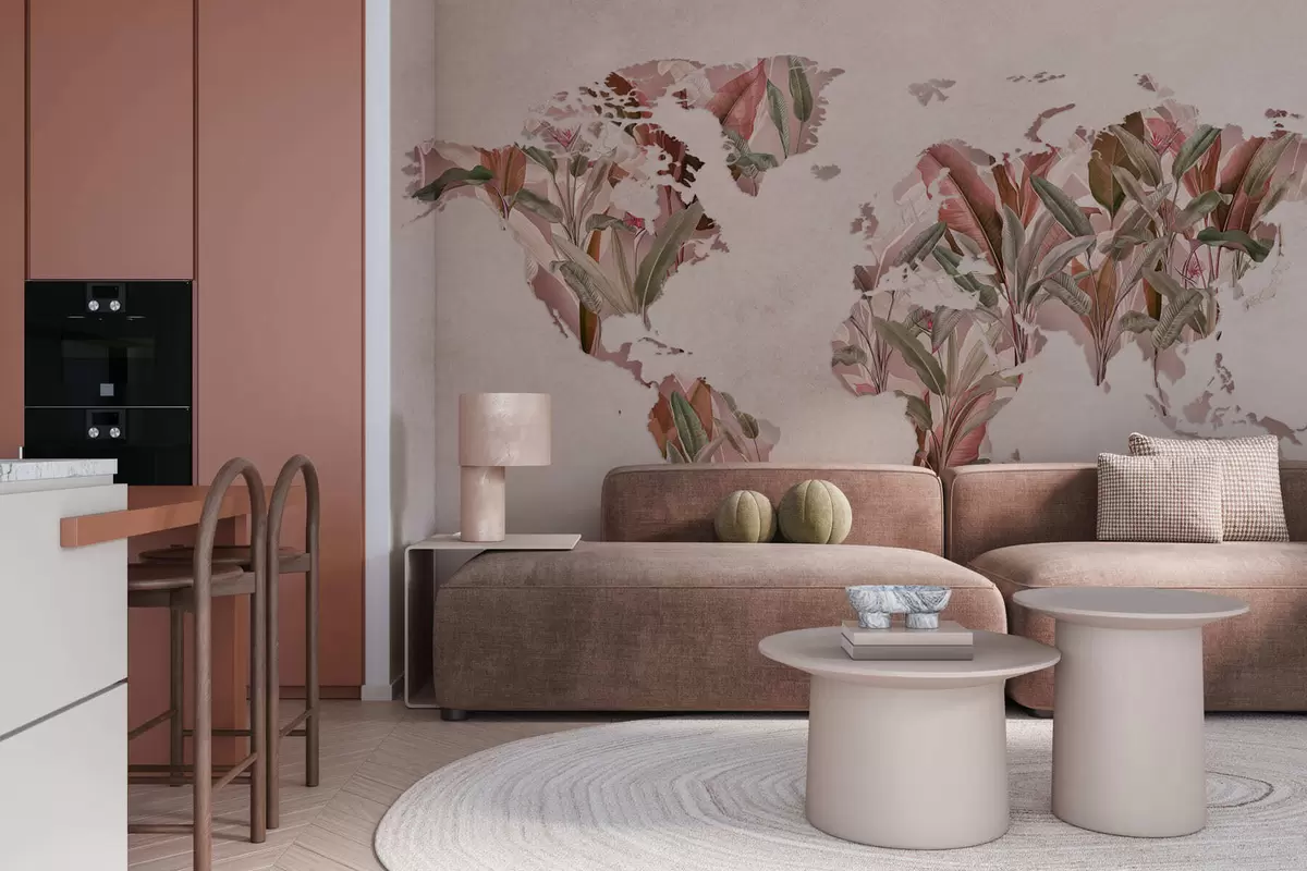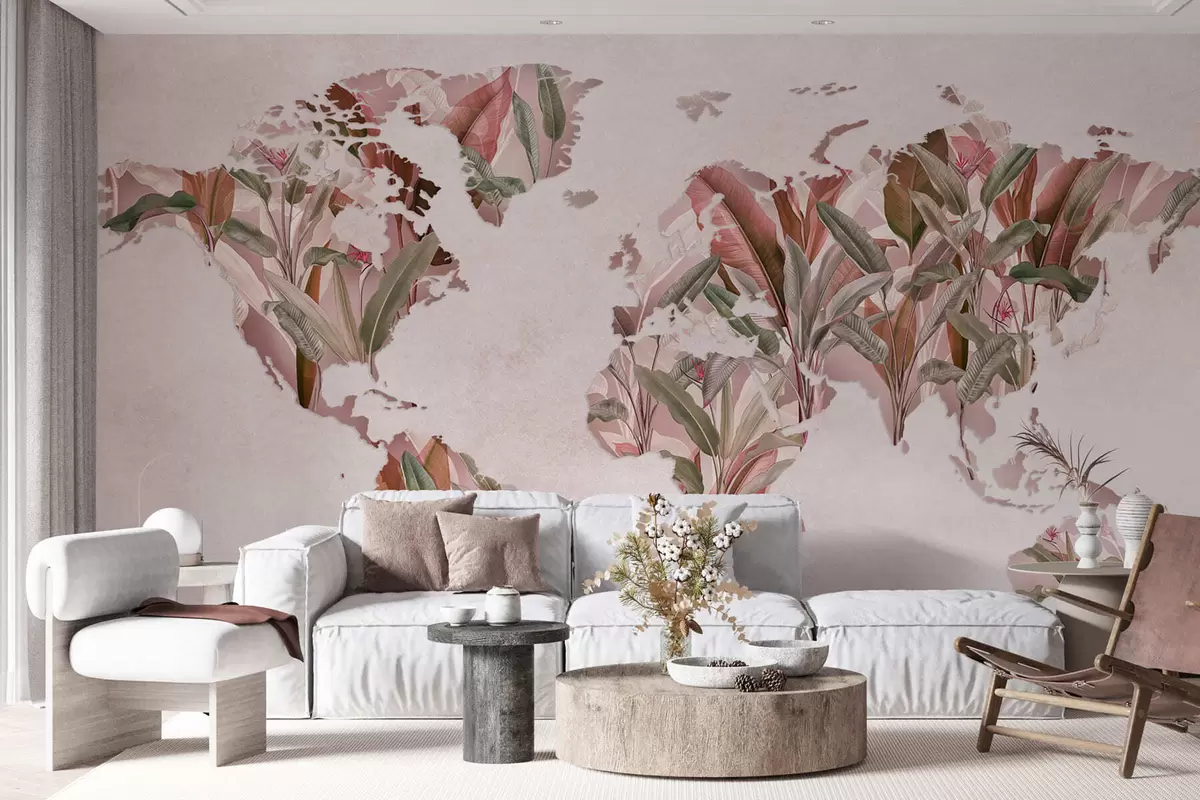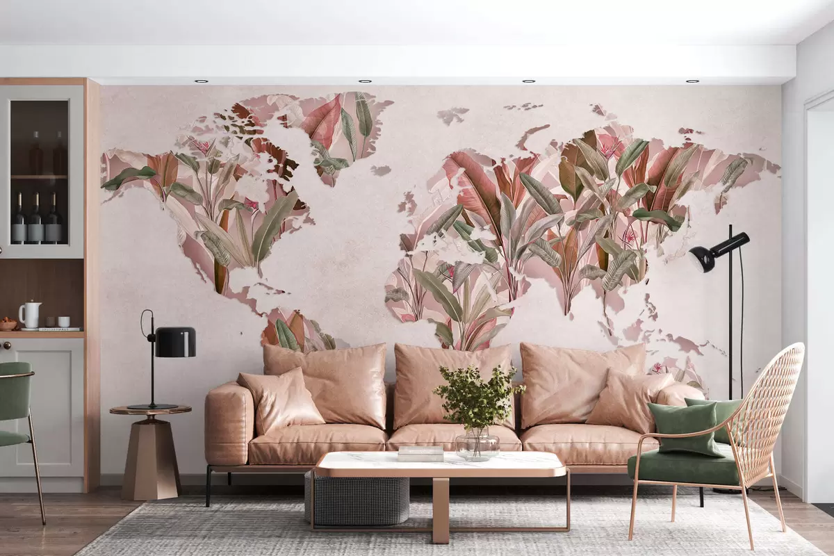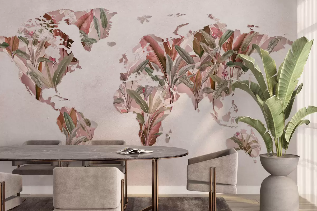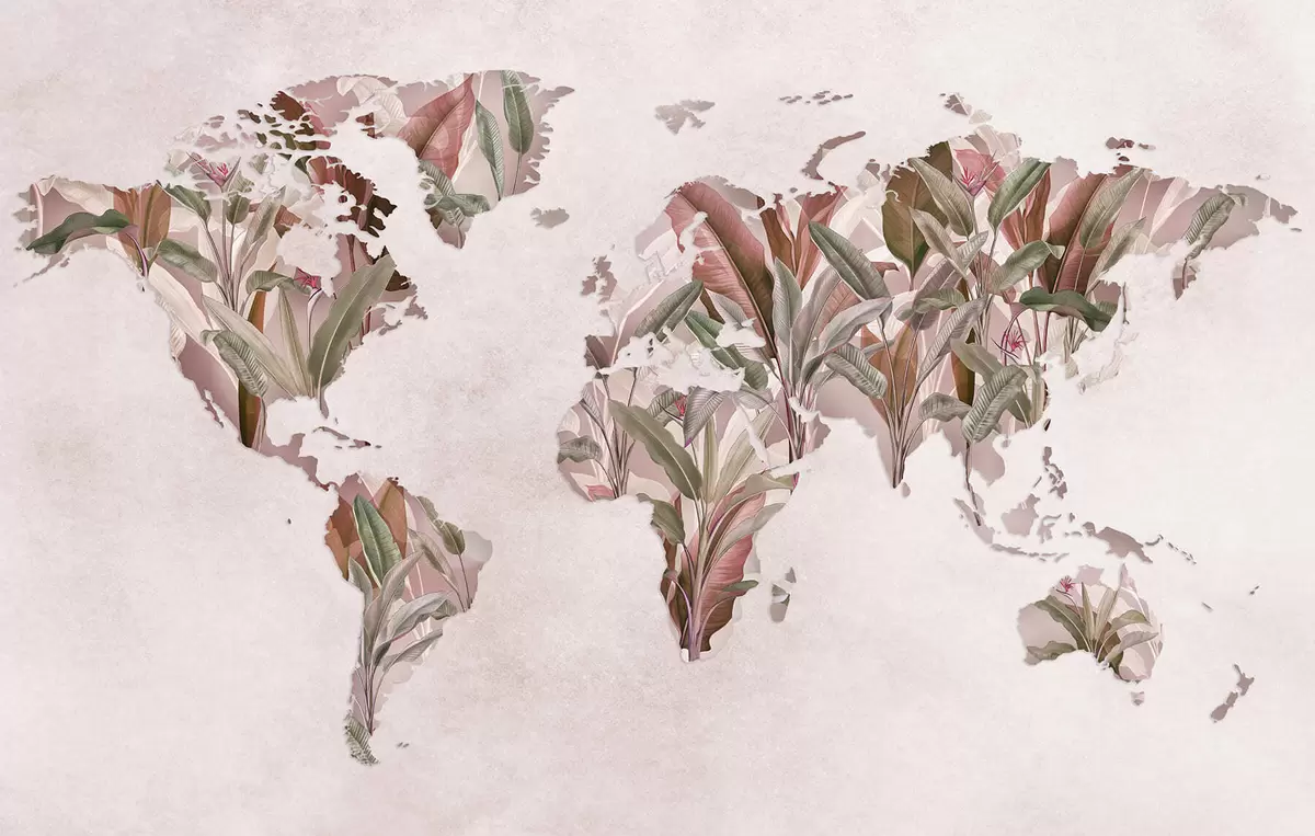 Fotomurales Un mapamundi rosa hecho con hojas de plátano Nr. c00007v2
