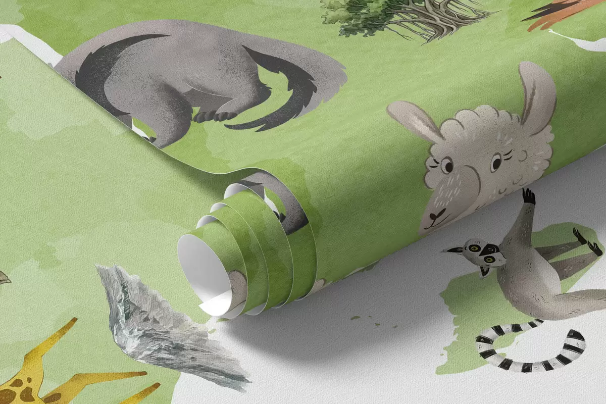Fotomurales Un mapa de Green en estilo acuarela con animales, plantas y arquitectura. Etiquetas en ucraniano Nr. c00009ukv2