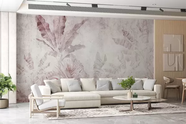 Fotomurales Hojas de plátano sobre un muro de hormigón Nr. u73886v2