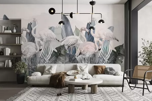Fotomurales Elegantes flamencos entre frondoso follaje Nr. w00505v2