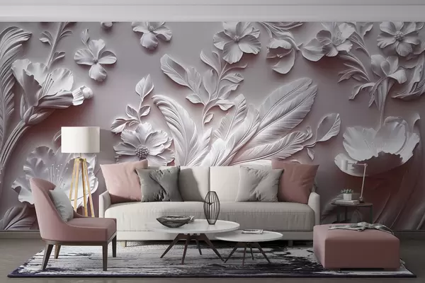Fotomurales Exquisitas flores y hojas en relieve en tonos rosados Nr. w01356v1