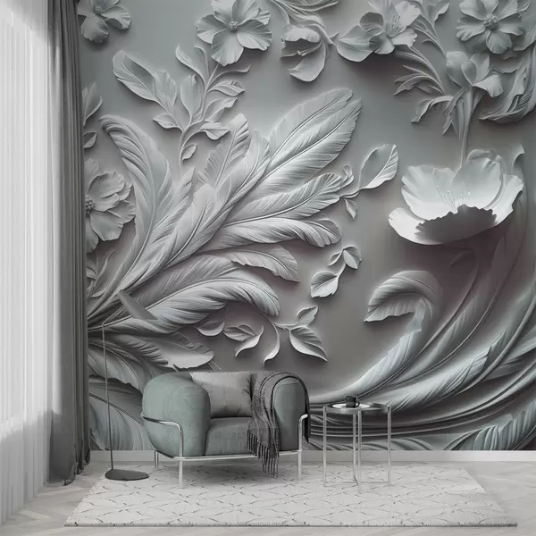 Fotomurales Exquisitas flores y hojas en relieve en tonos grises Nr. w01356v2