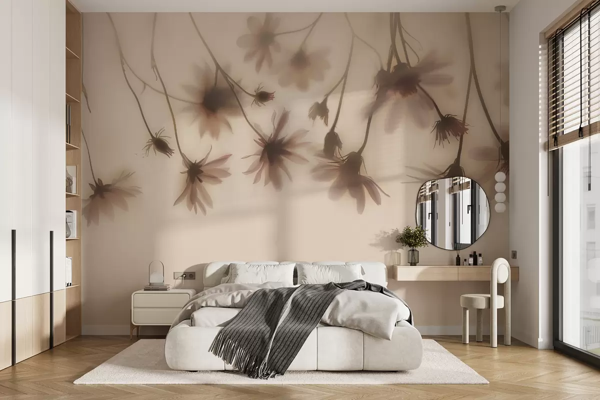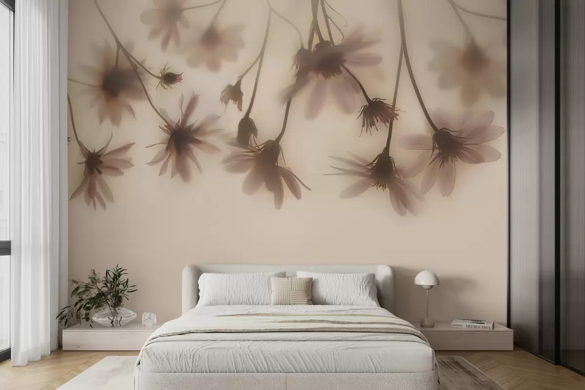 Fotomurales Delicadas flores en la niebla colgando desde arriba en colores rosados Nr. w01469
