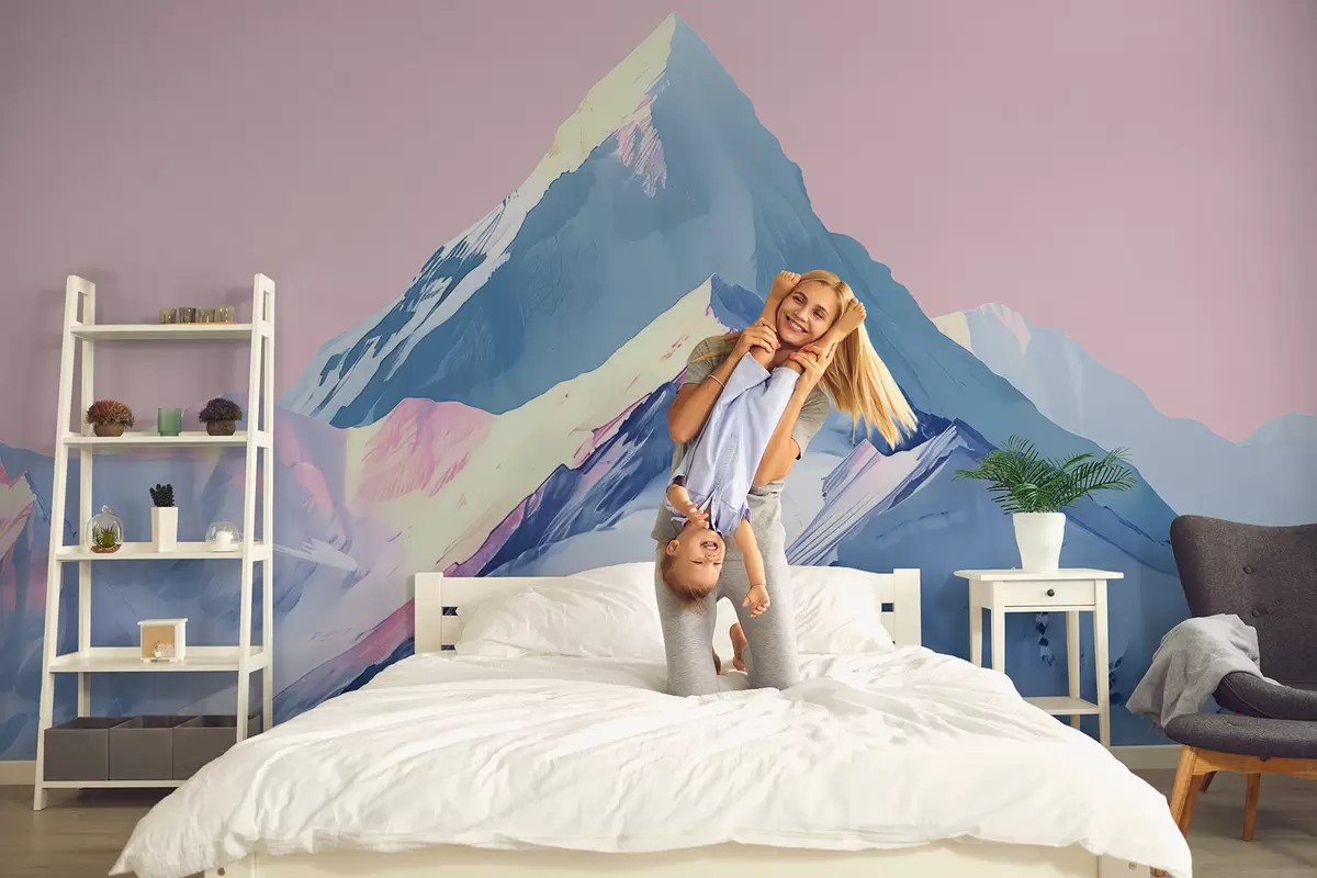 Fotomurales Montañas azules y rosas en estilo dibujado. Nr. w01497